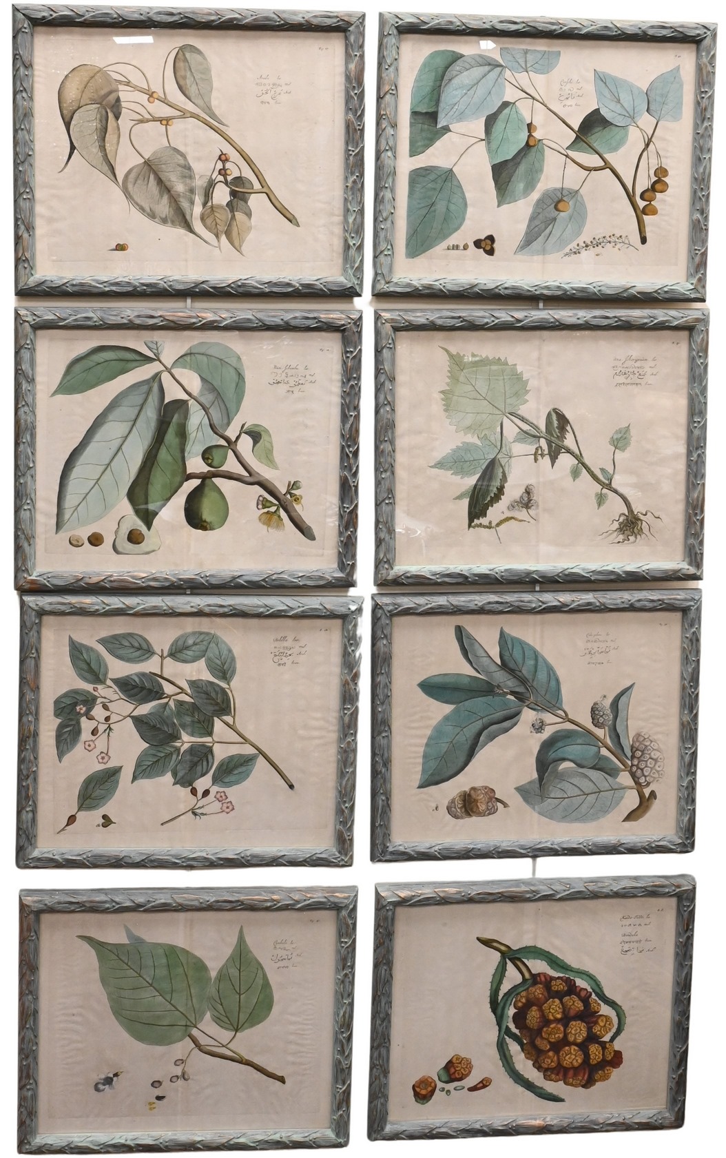 Set of eight hand colored and illustrated copperplate botanical engravings from Hortus Indicus Malabaricus, originally published 1678, Amsterdam, to include