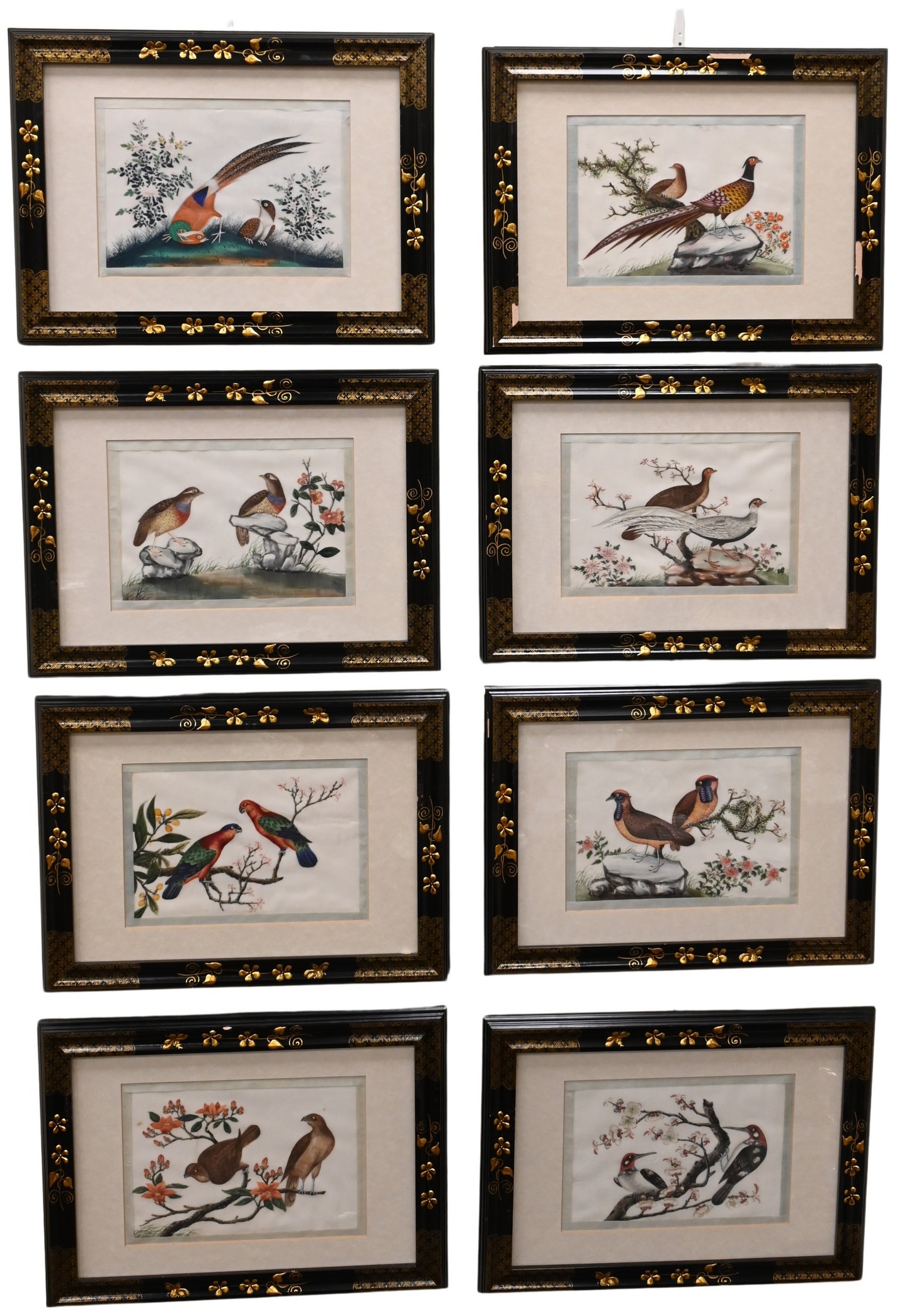 Depicting exotic birds on rice or tissue paper in hand painted Chinoiserie frames, circa 1840