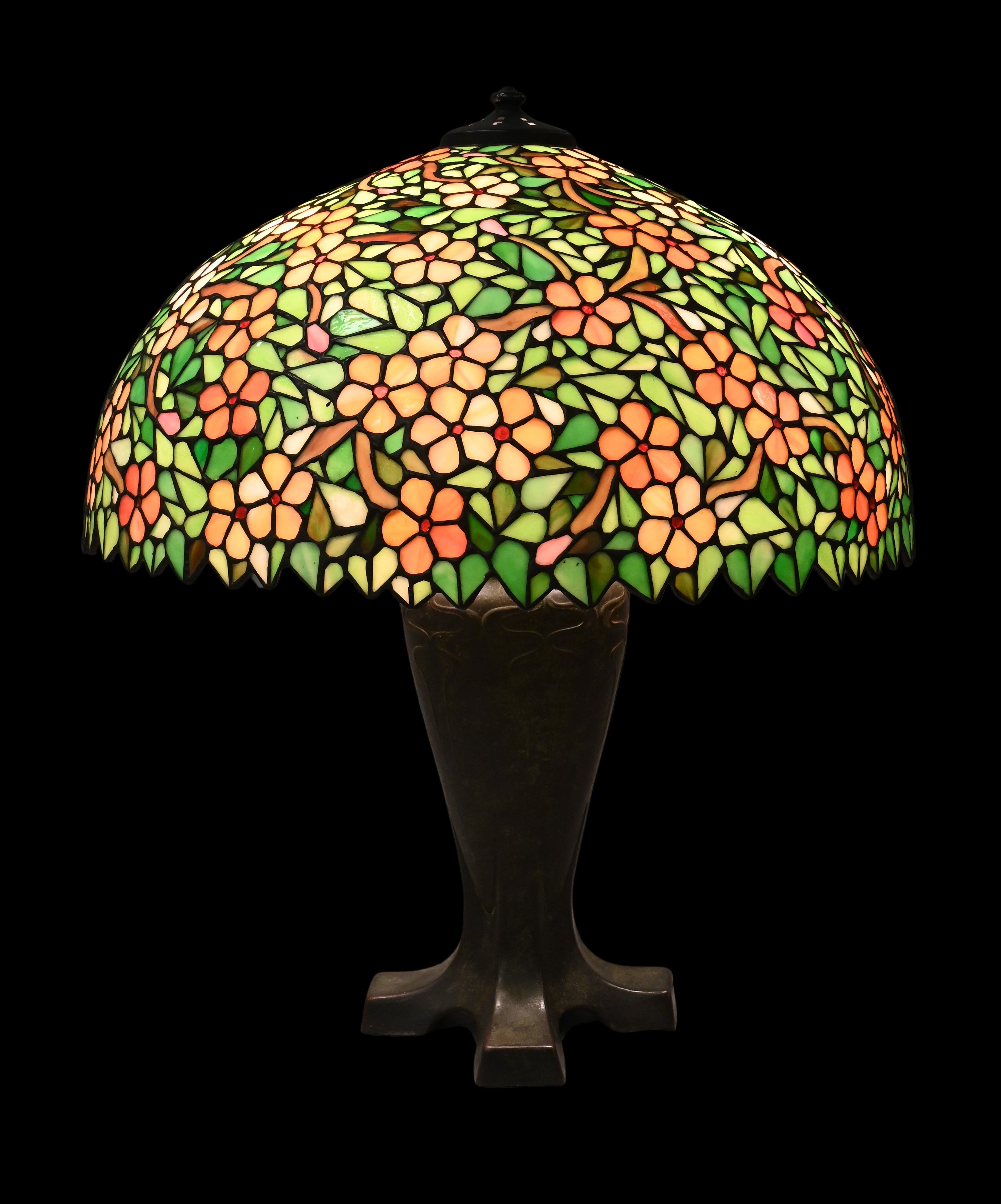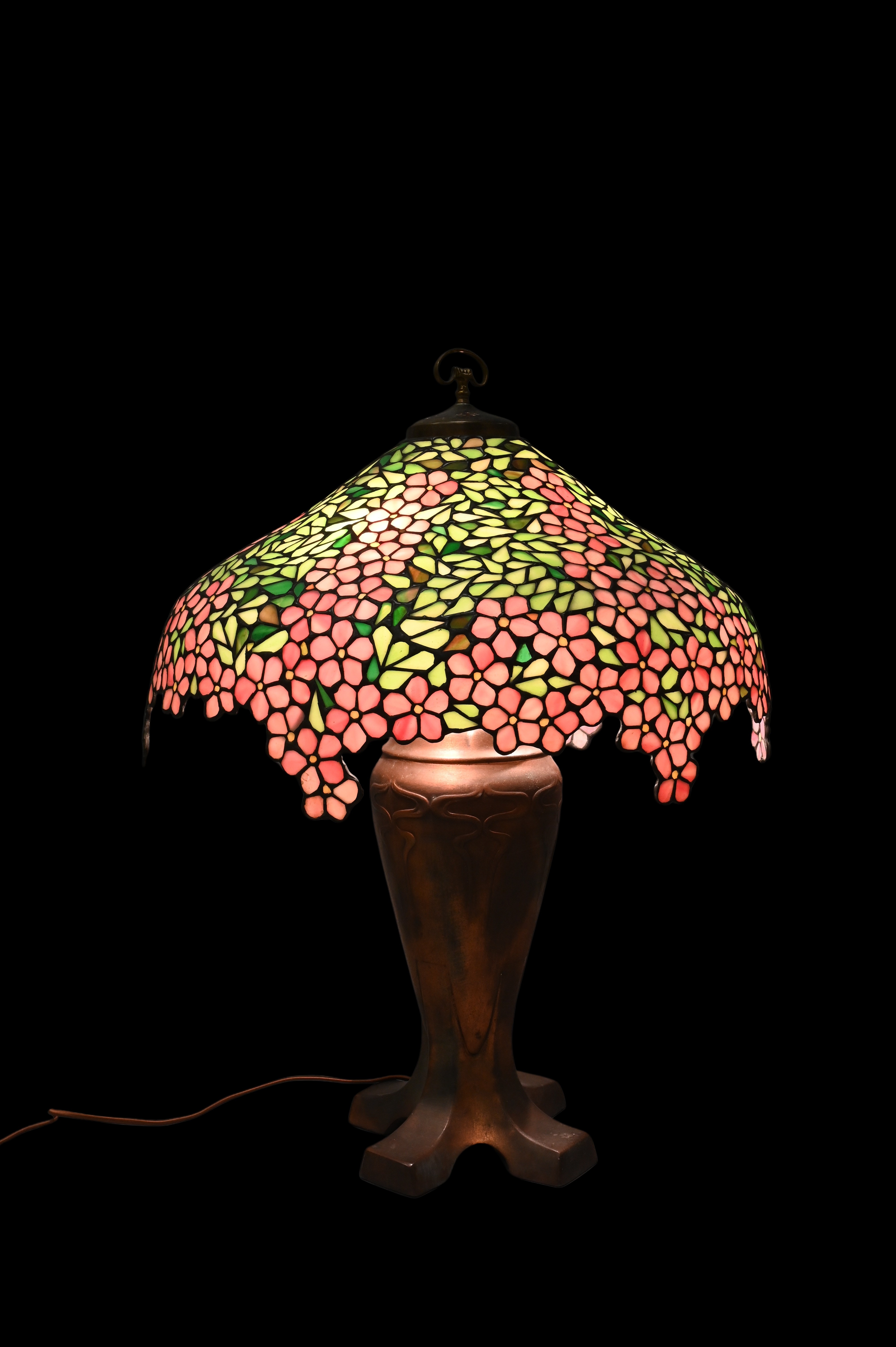 Leaded and Stained Glass “Apple Blossom” Lamp