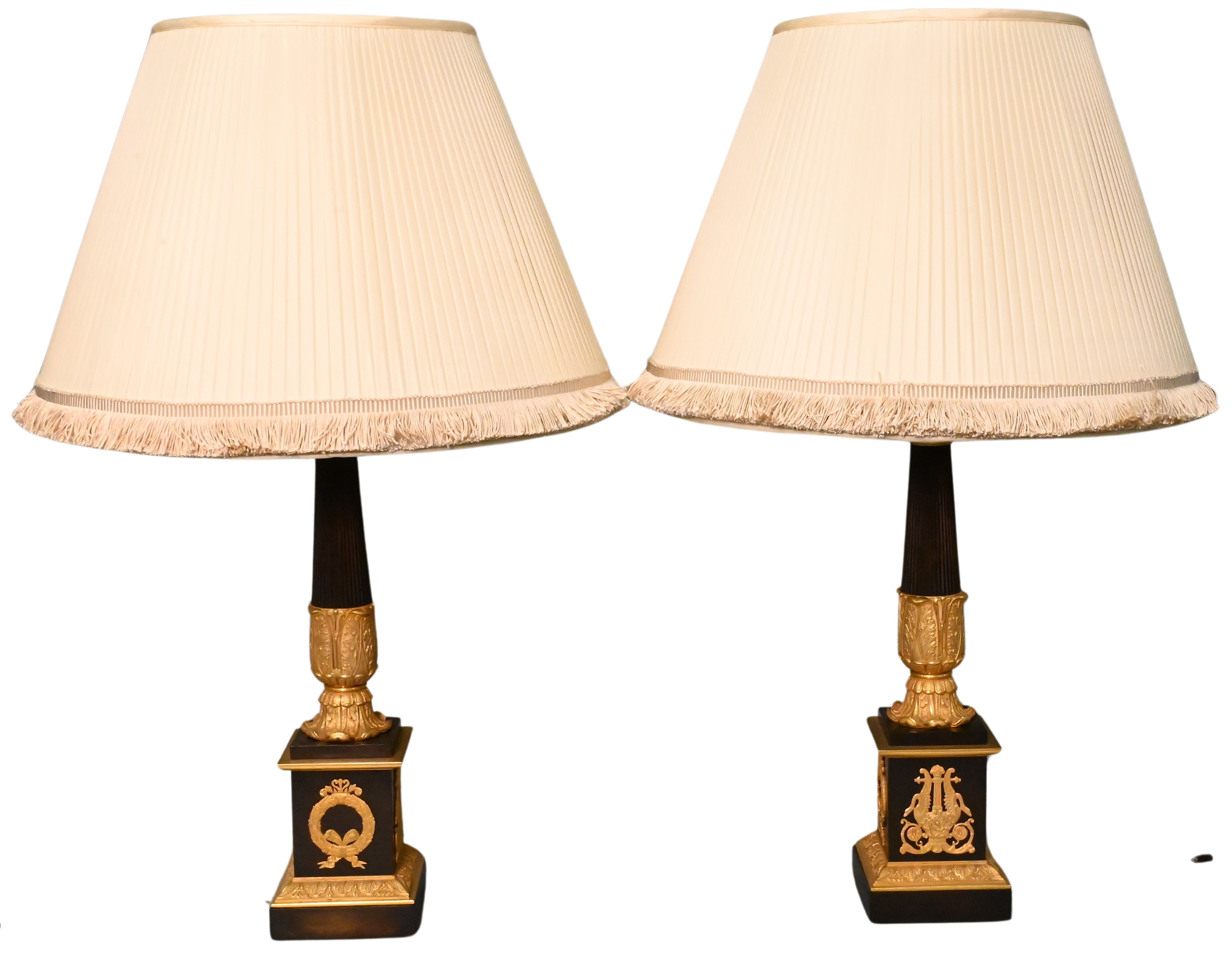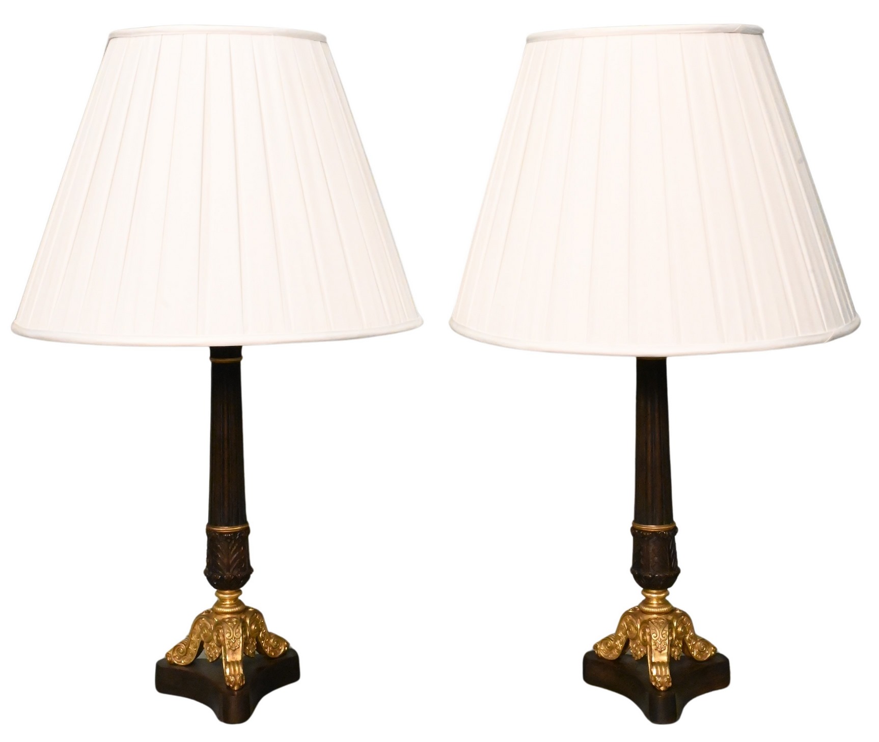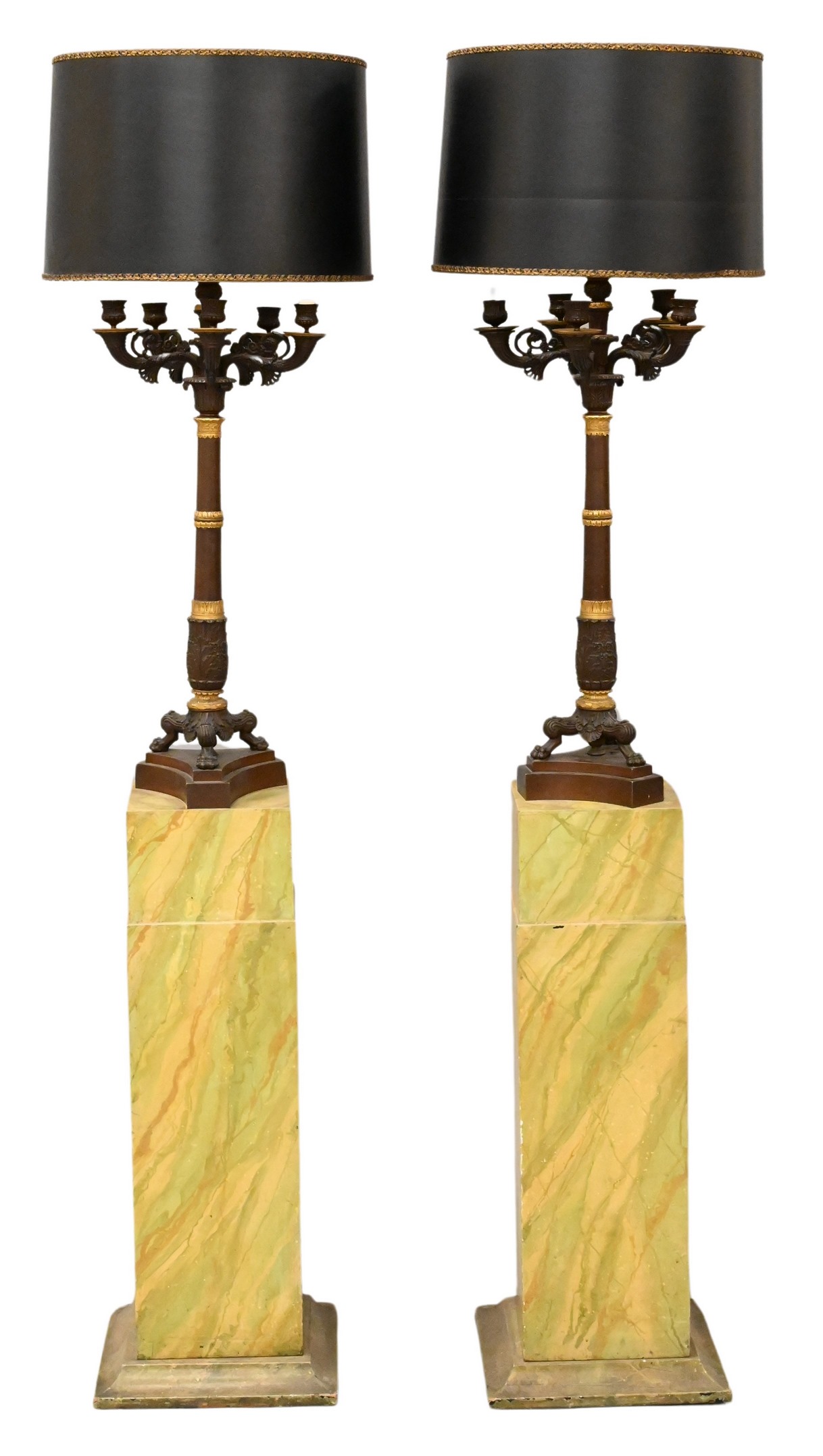 Pair of Empire Patinated and Gilt-Bronze Candelabras