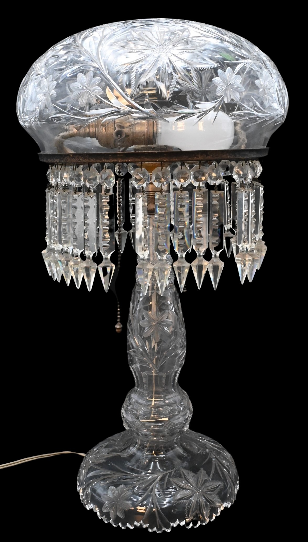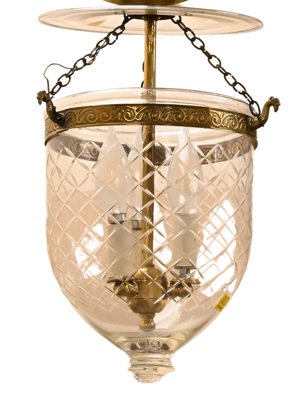 Condition: presents well, minor chipping to inside border of glass, two holes at bottom of light, possibly missing elements, no prisms present, rod out of joint and cap broken off but present
