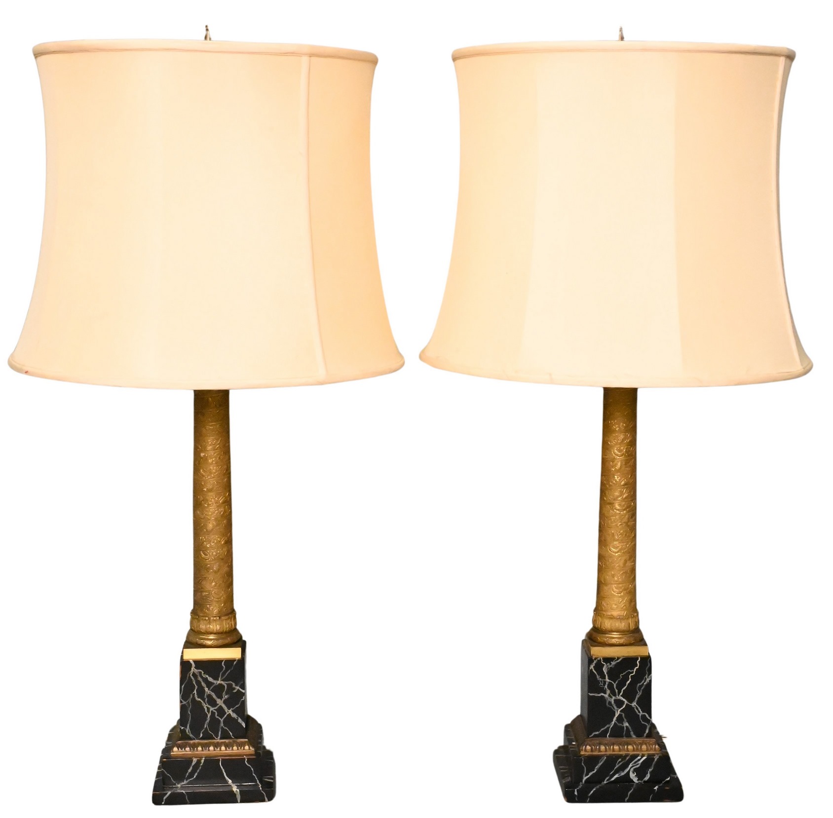 Pair of Gilt Bronze and Faux Marble Painted Wood Models of Column Lamps