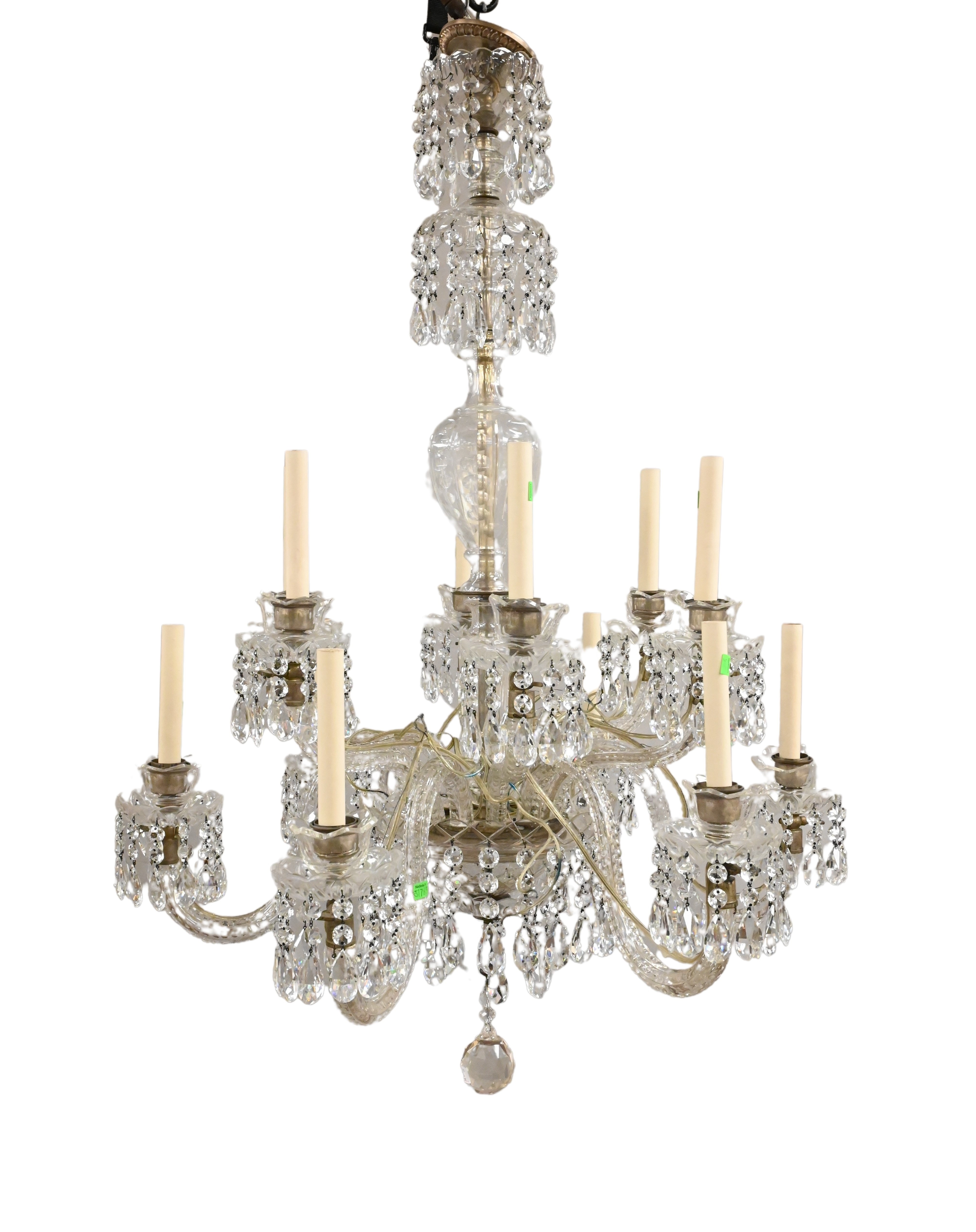 Condition: presents well, two prisms missing, chips to base, tarnish to silver