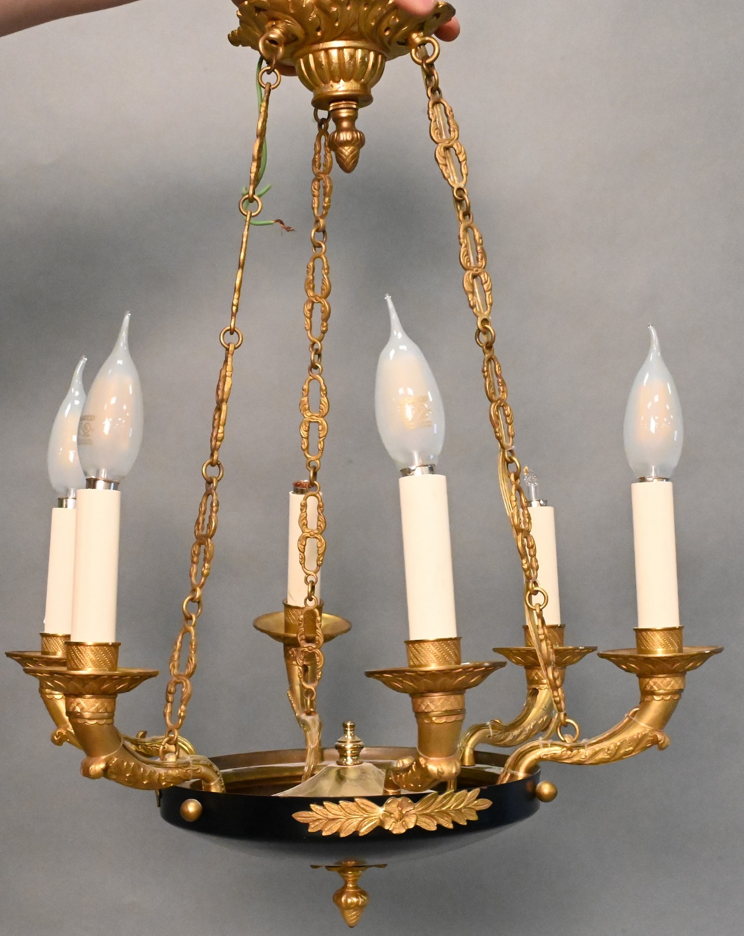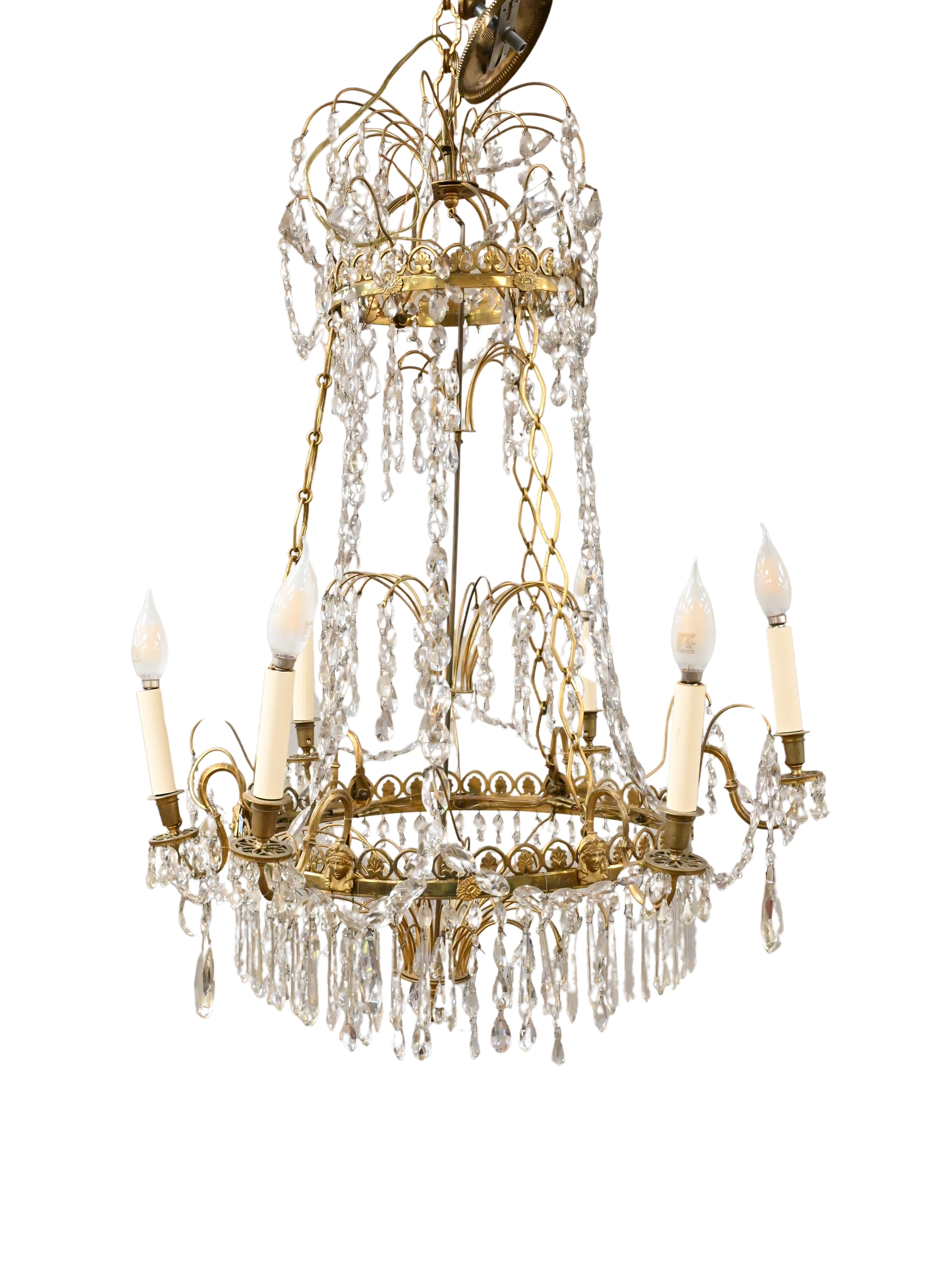 Swedish Six Arm Crystal and Ormolu Chandelier