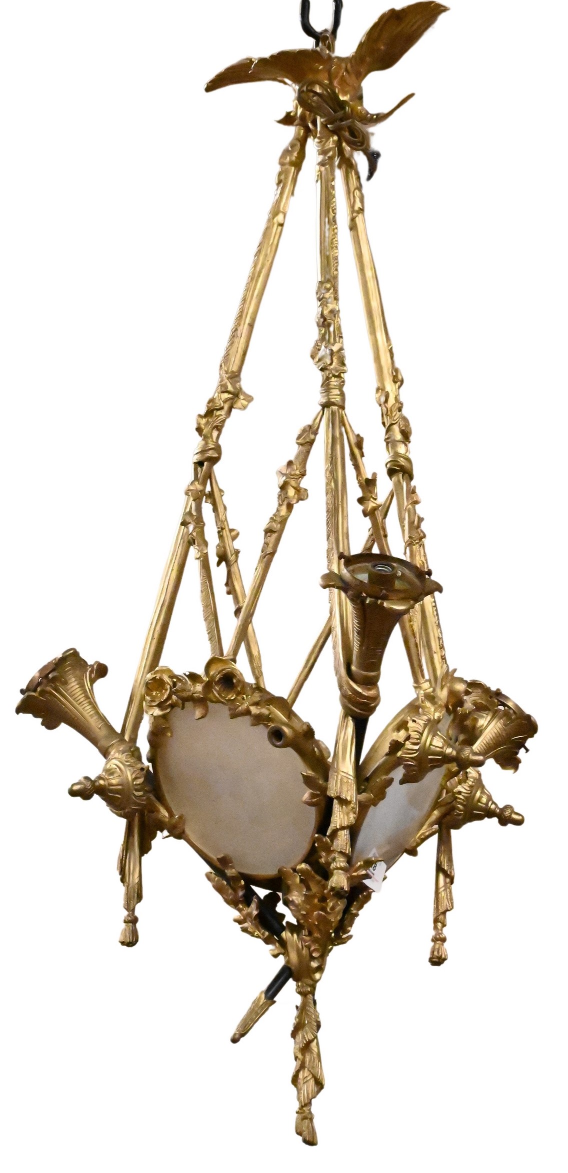 having six double arms holding 12 lights on circular frame with Athenaeum and Grecian motifs