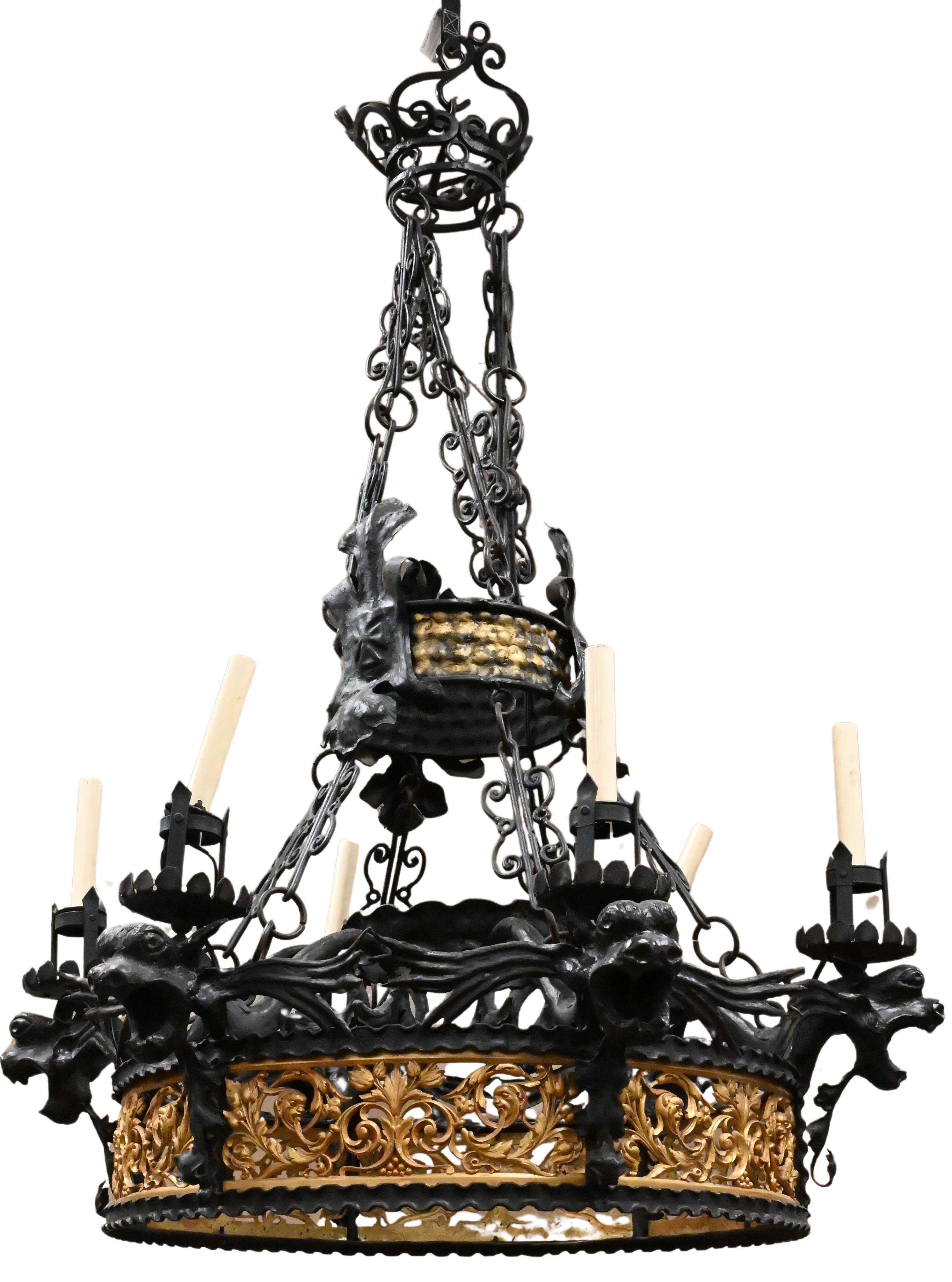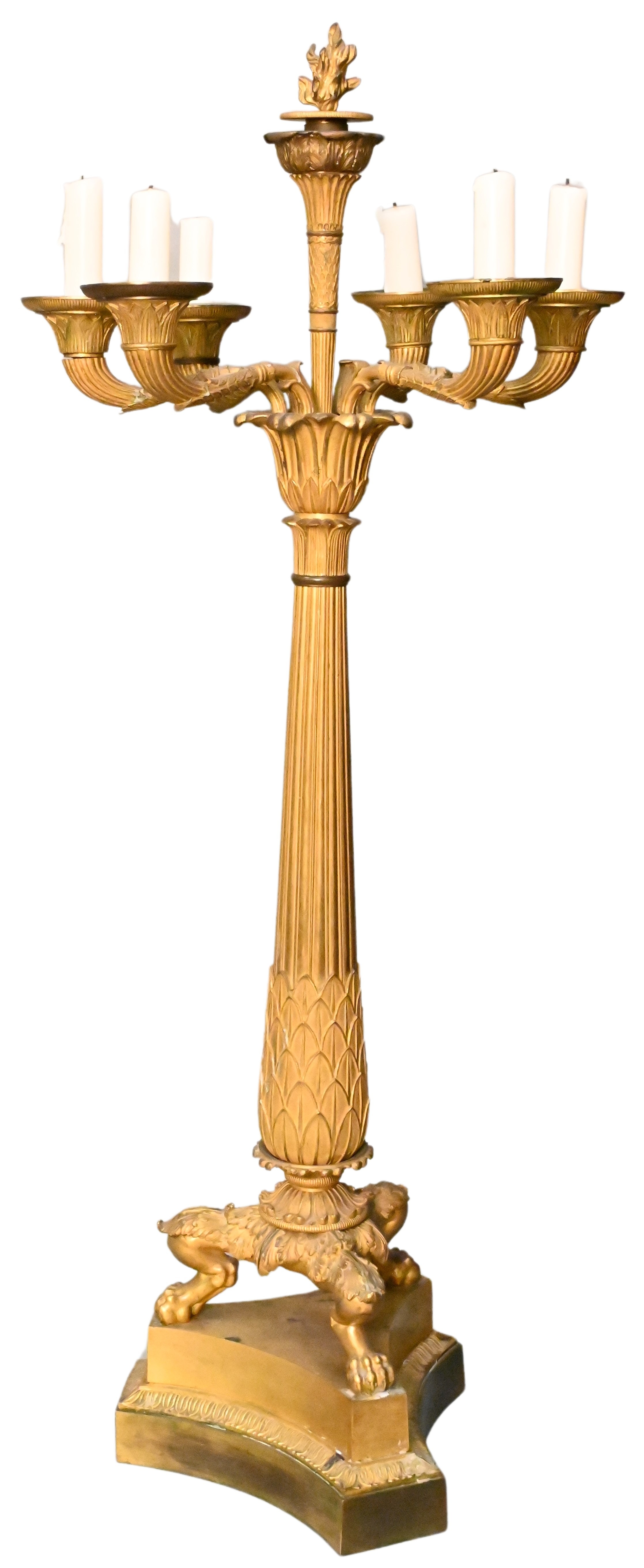 having six sockets, gargoyle heads, and gilt decorated center openwork