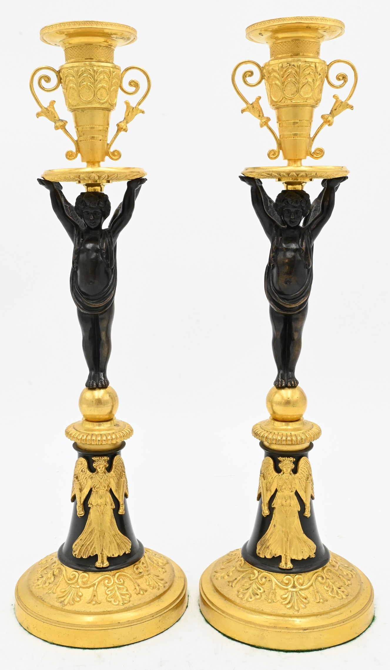 Pair of Empire Gilt Bronze Winged Figural Candelabra
