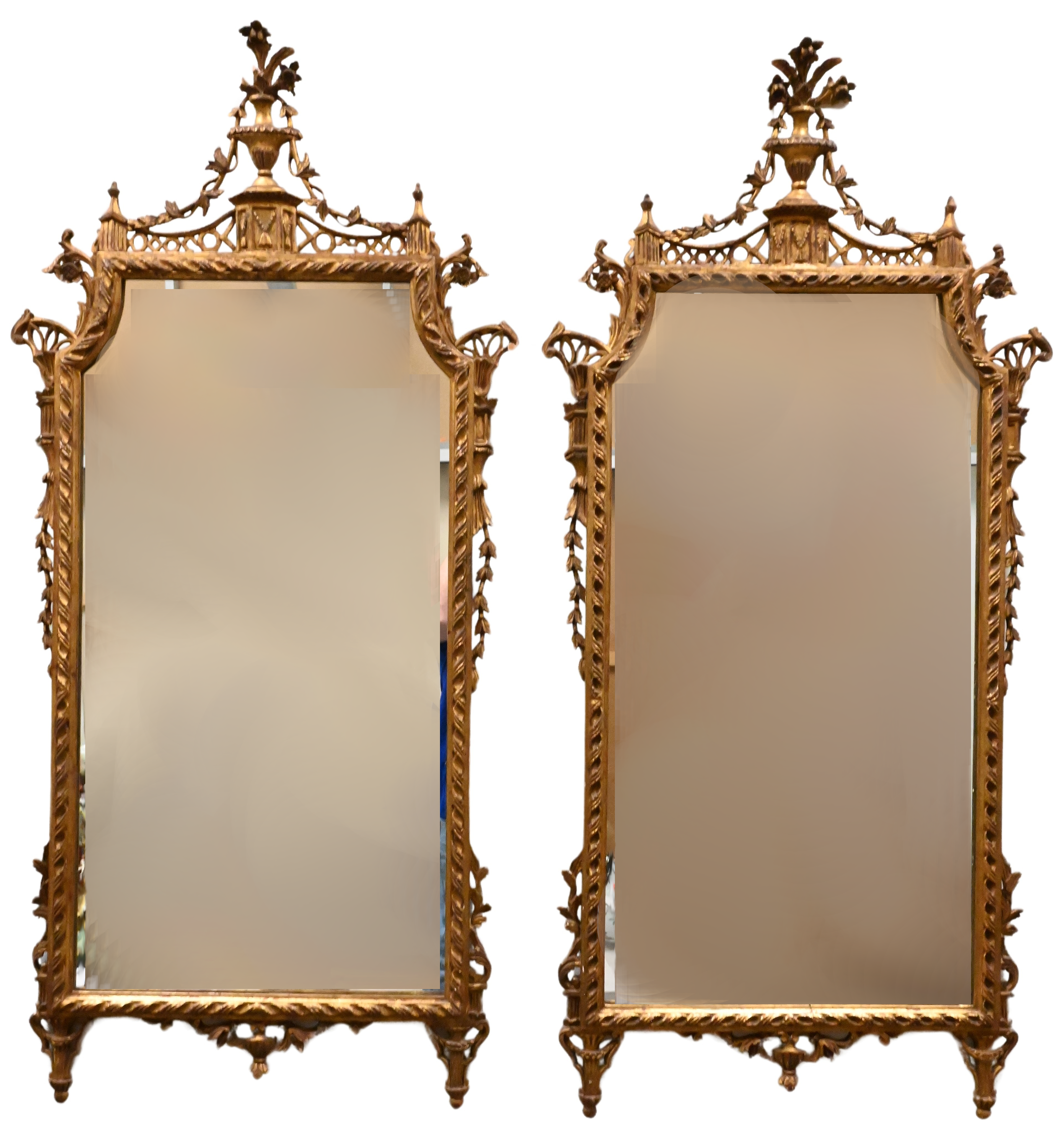 Condition: chipping to gilt and paint throughout, some cracks and breaks, minor slivering, loss where the two mirrors join