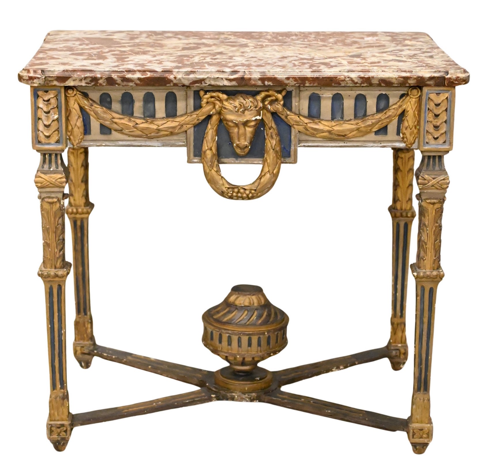 Condition: presents well, chips to top edges, one small mount under top marble missing, tape residue under top ormolu mount