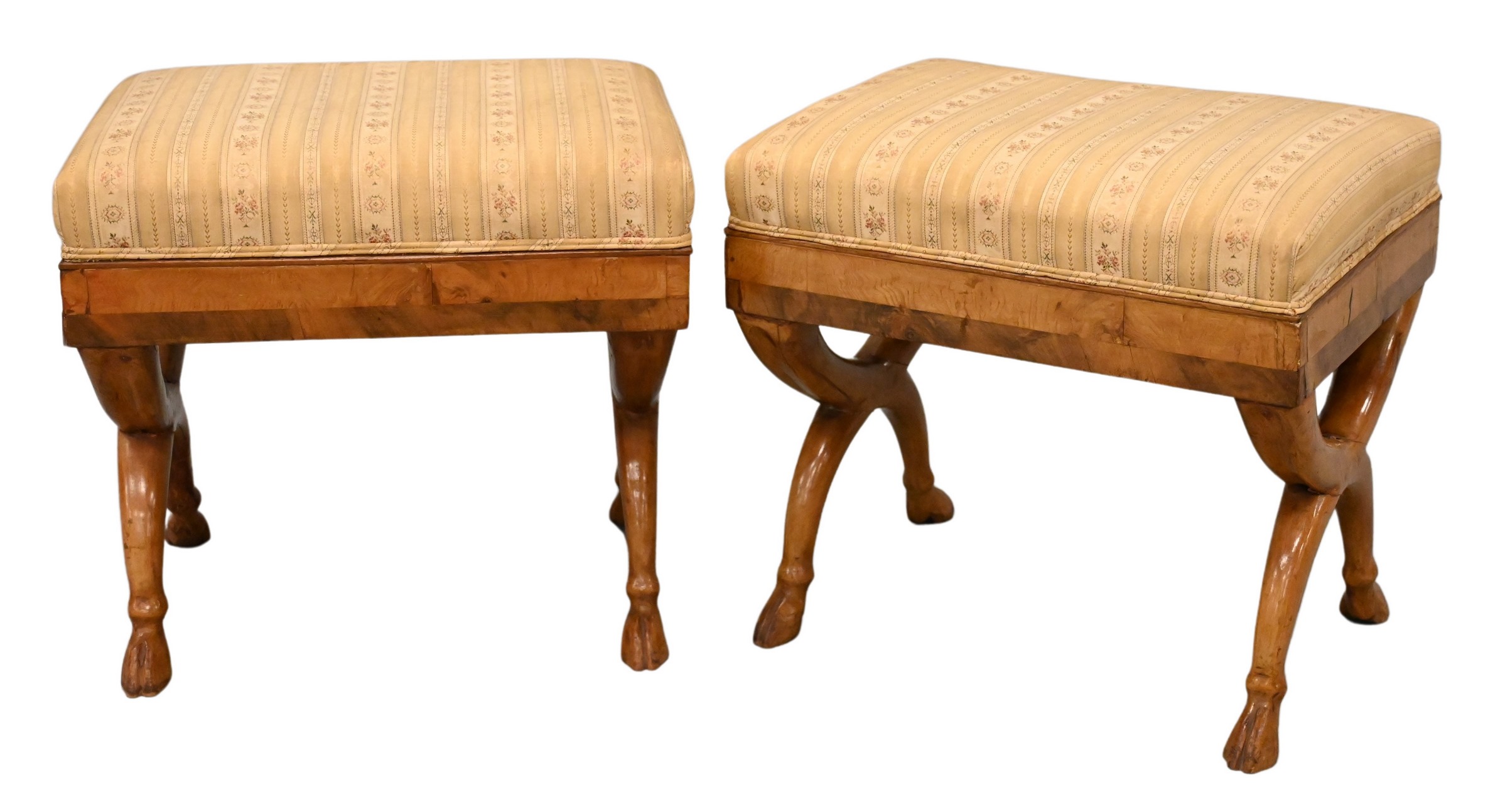 fruitwood and walnut, rectangular on curule-form base ending in hoof feet, 19th century