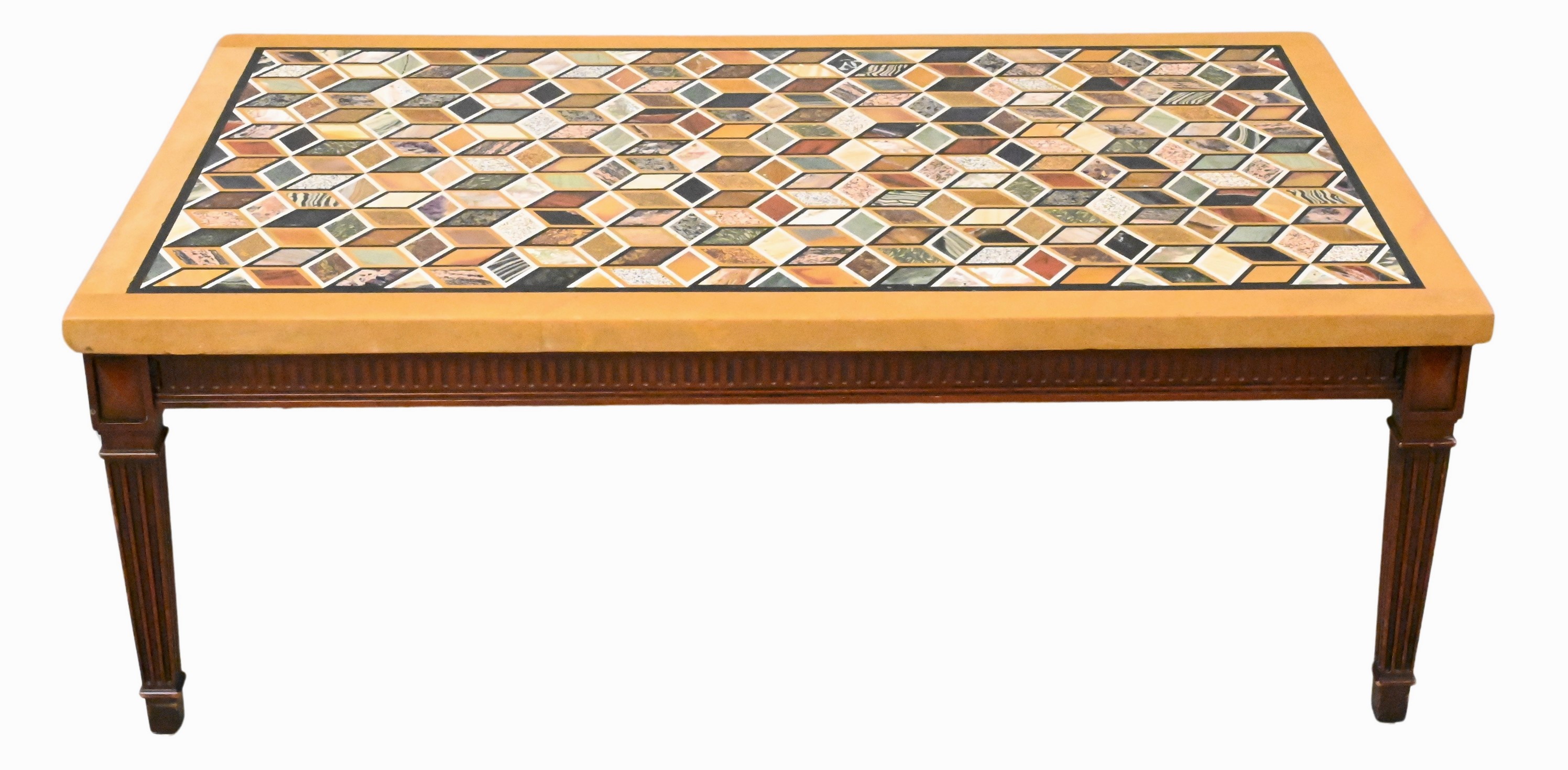 Italian Pietra Dura “Geometric Cube” Specimen Marble Top Coffee Table