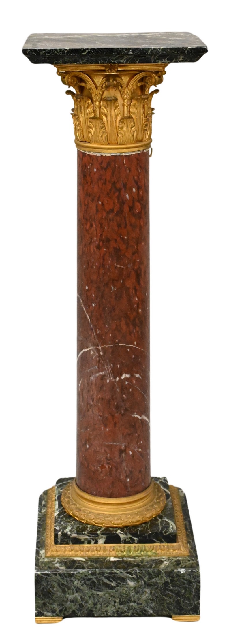 Neoclassical Style Rouge Marble and Gilt Bronze Mounted Column Form Pedestal
