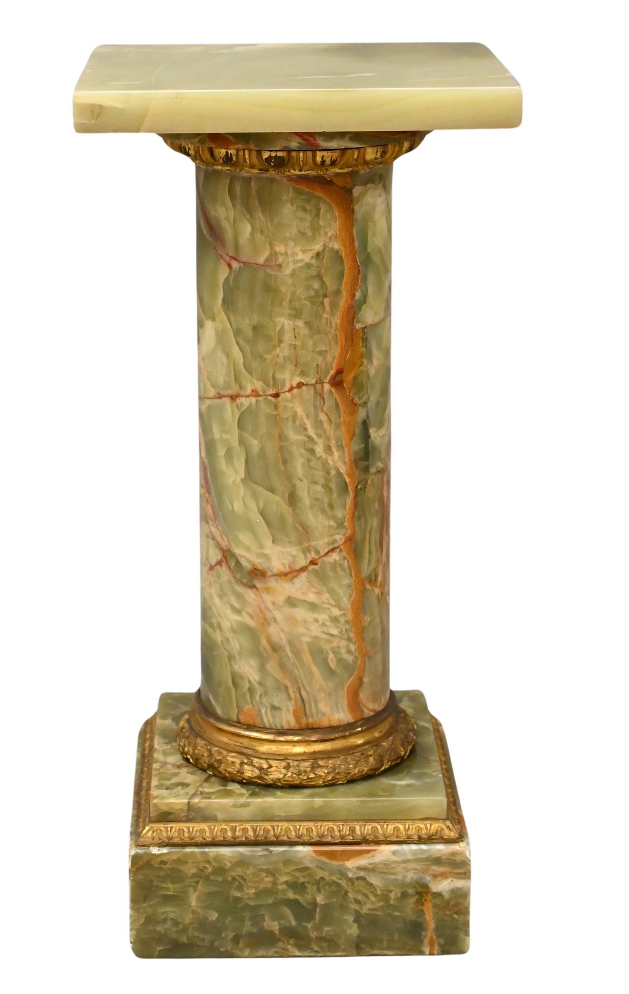 having square top, circular shaft on heavy square base with gilt bronze mounts