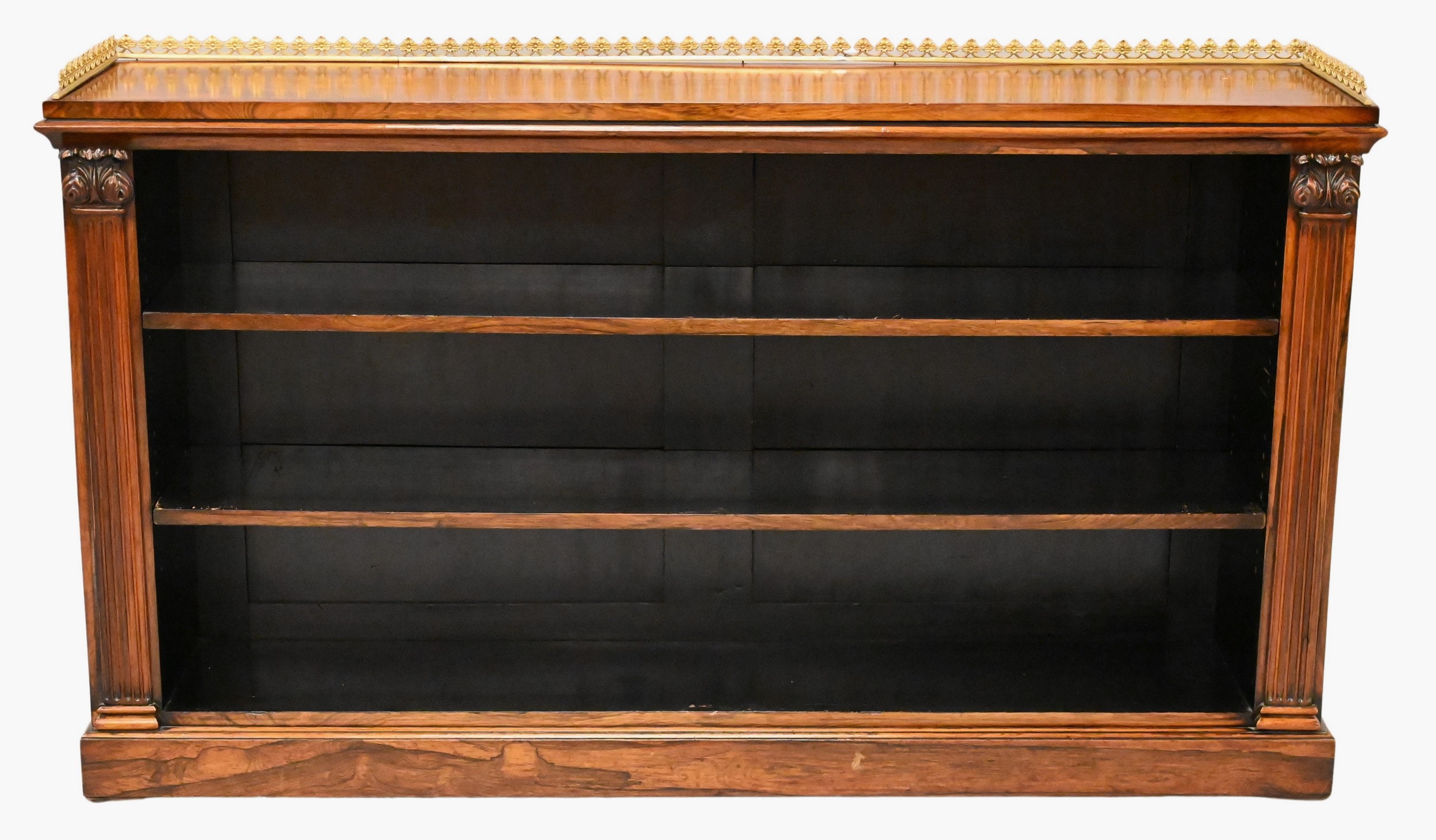 having fitted pierced ormolu gallery, plinth and flanking pilasters, and two adjustable shelves