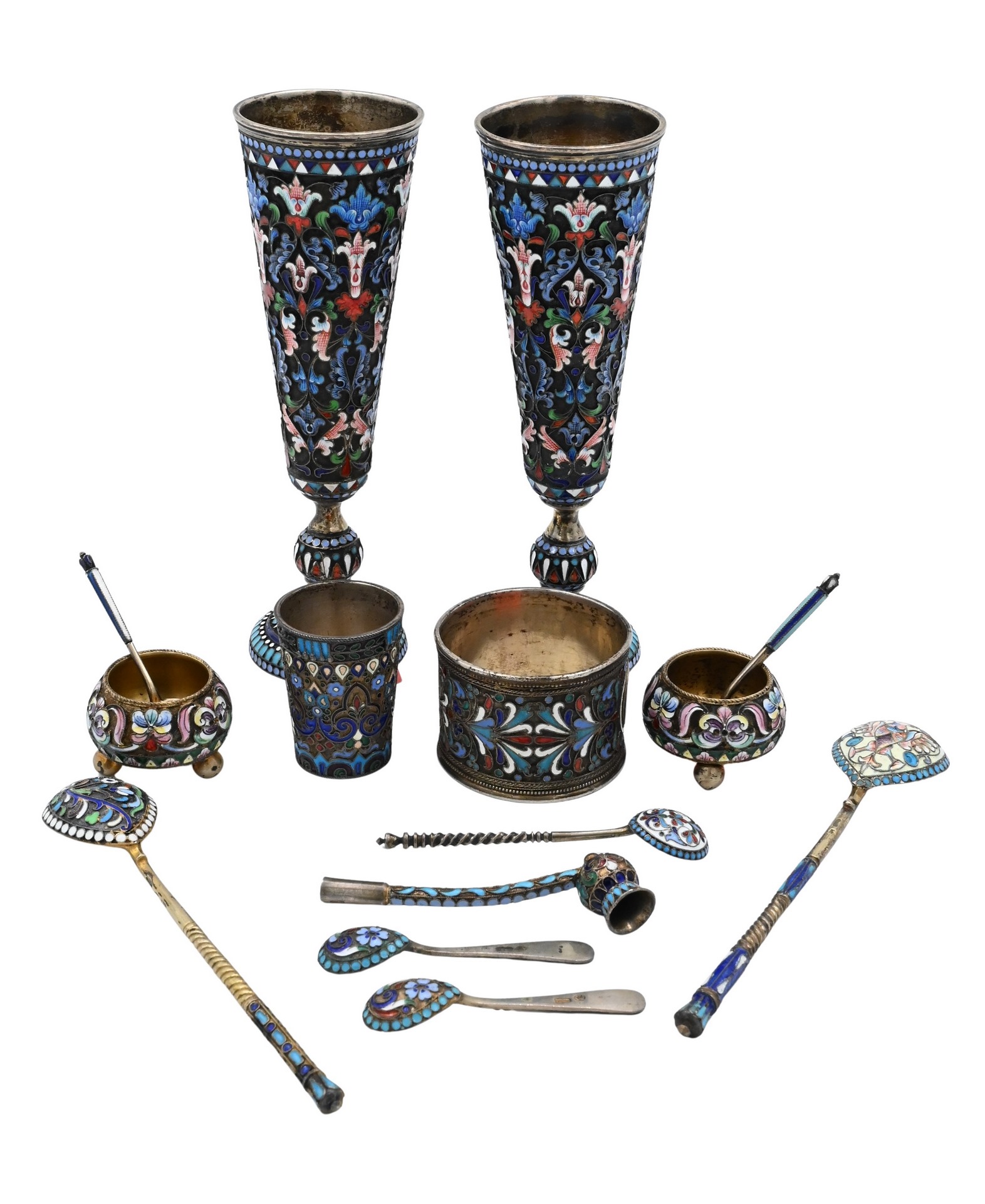 Condition: overall good condition, napkin ring and champagne with minor loss to enameling