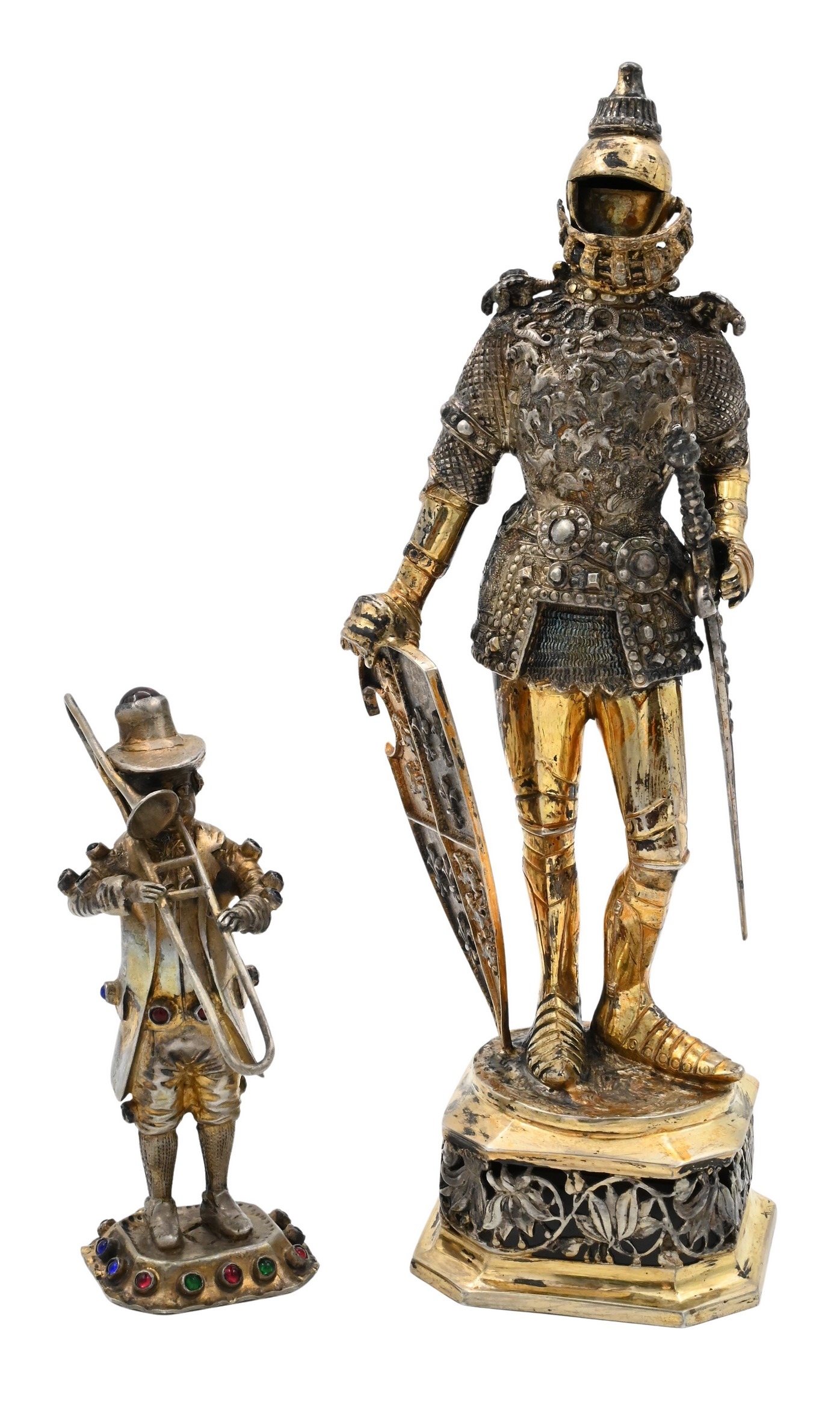 Condition: missing one hinge to knight’s helmet, wear to gold wash on both pieces, otherwise good condition