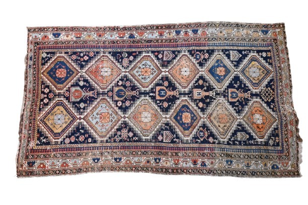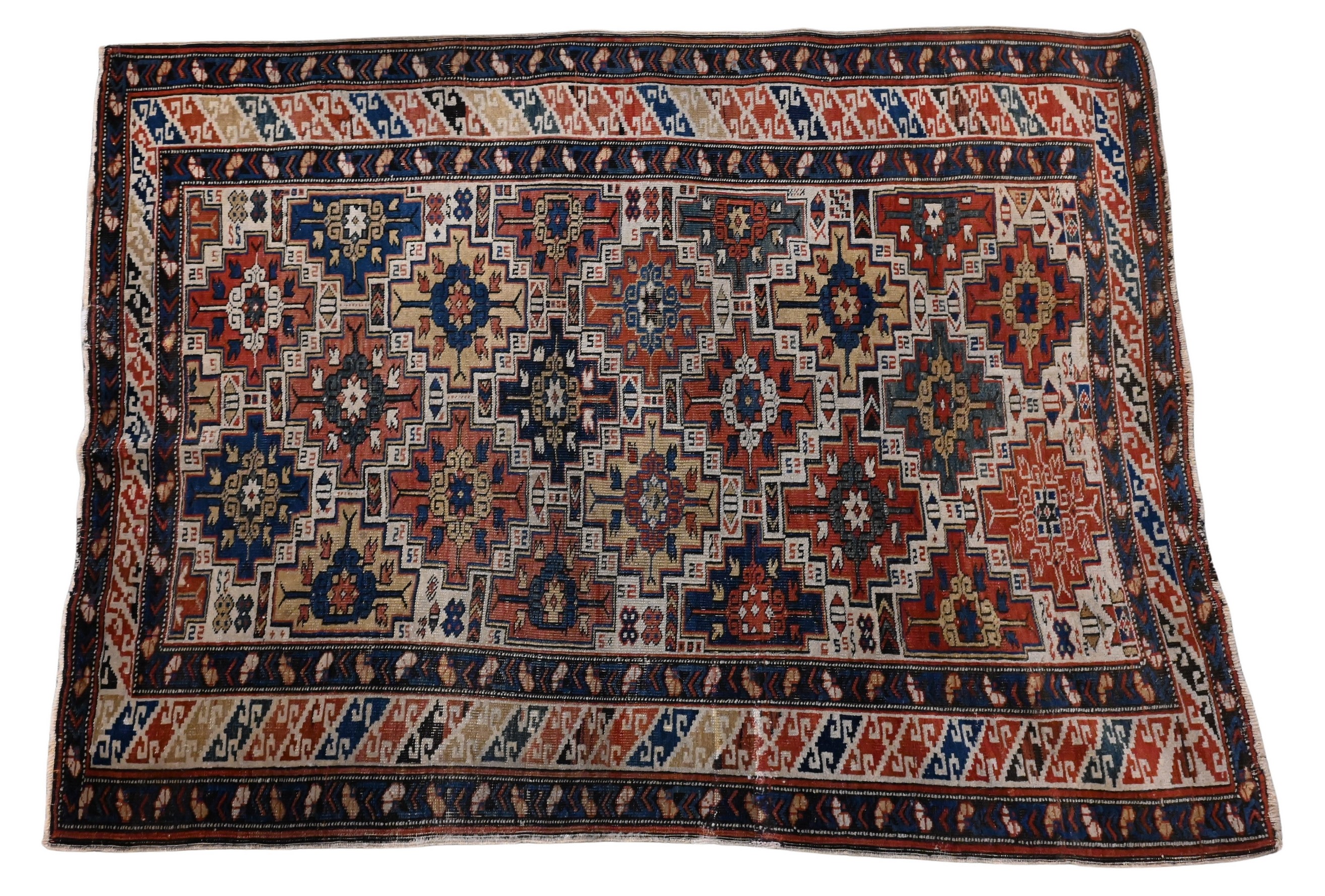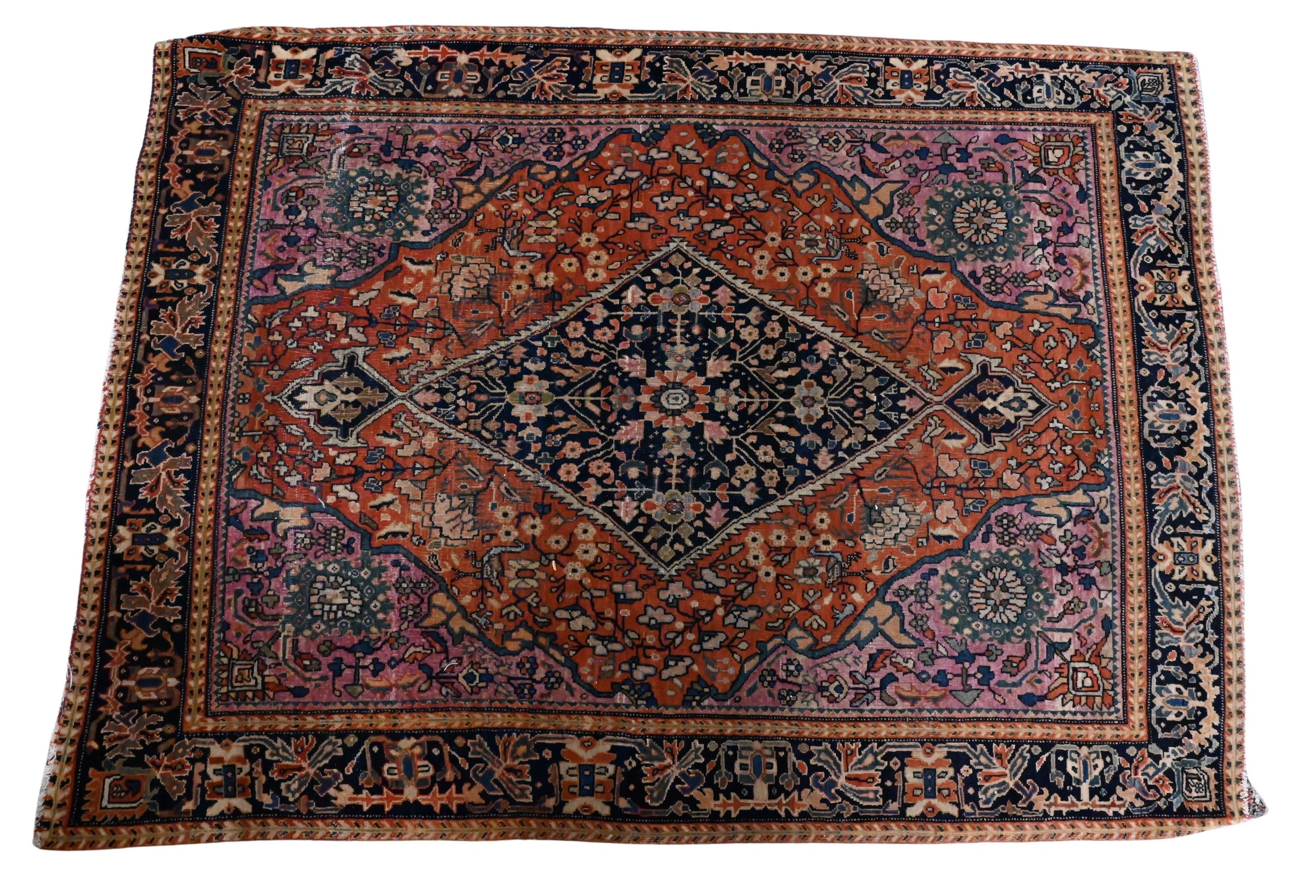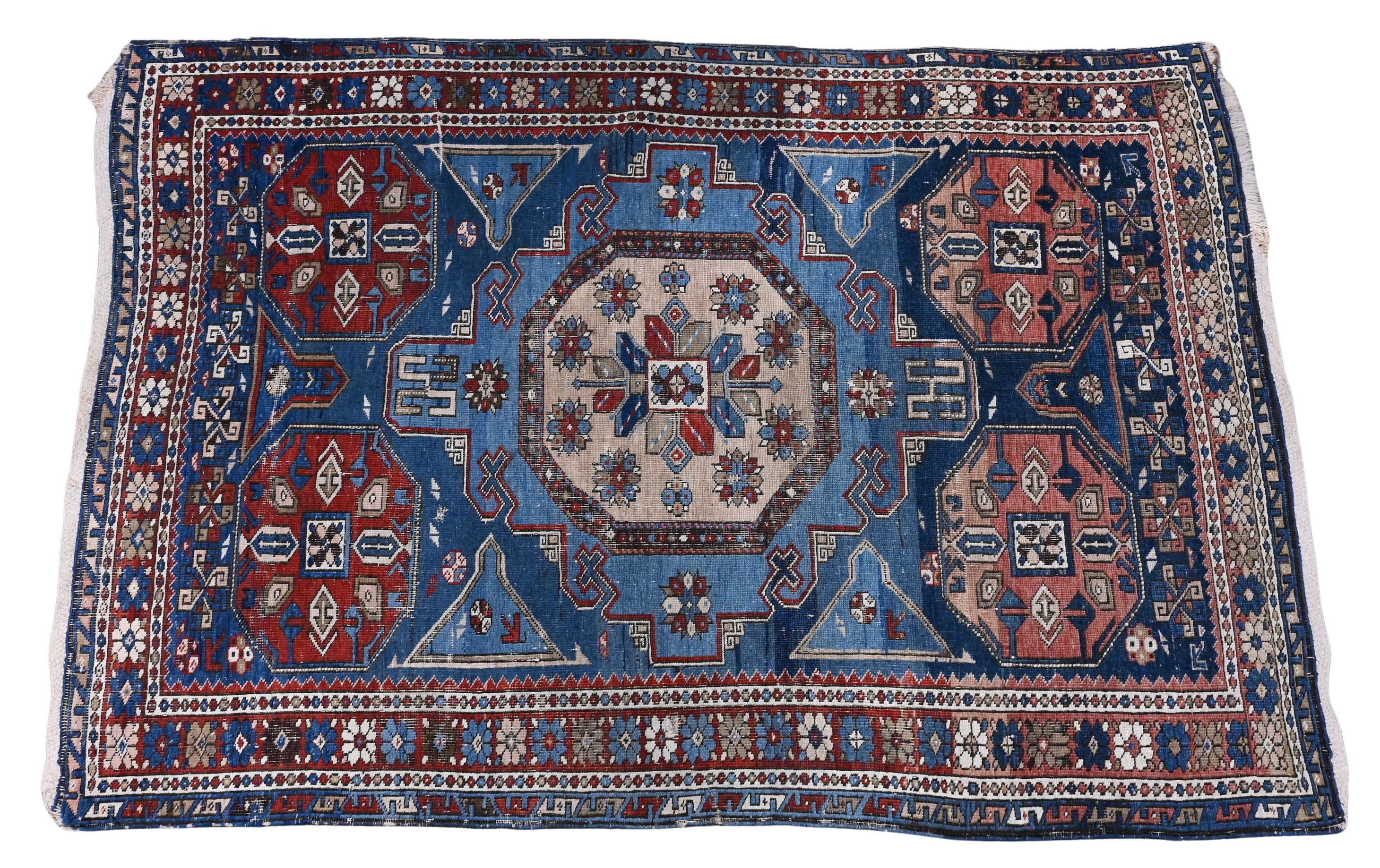 Condition: presents well, wear throughout, a few repairs, minor edge wear, no fringe