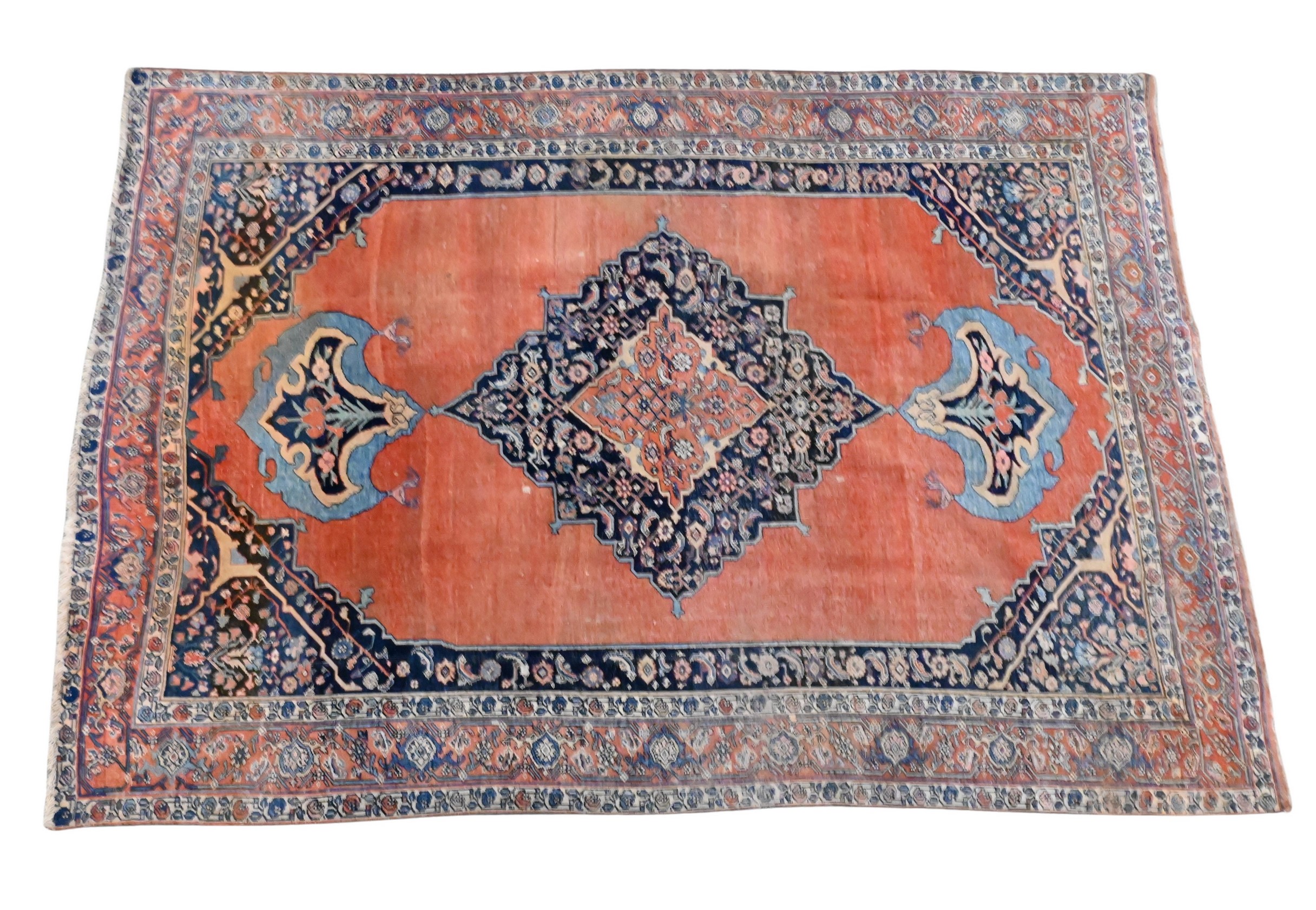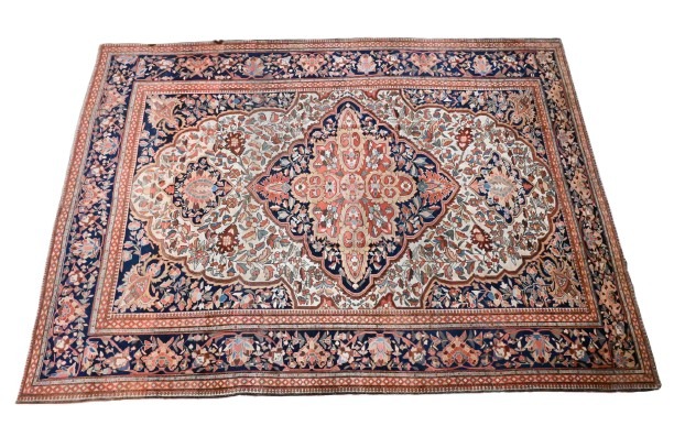 19th century West Persia, heavy pale tan ground having blue, orange, and red floral pattern