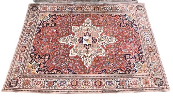 Condition: presents well, a few areas with lower pile, a few possible repairs in center