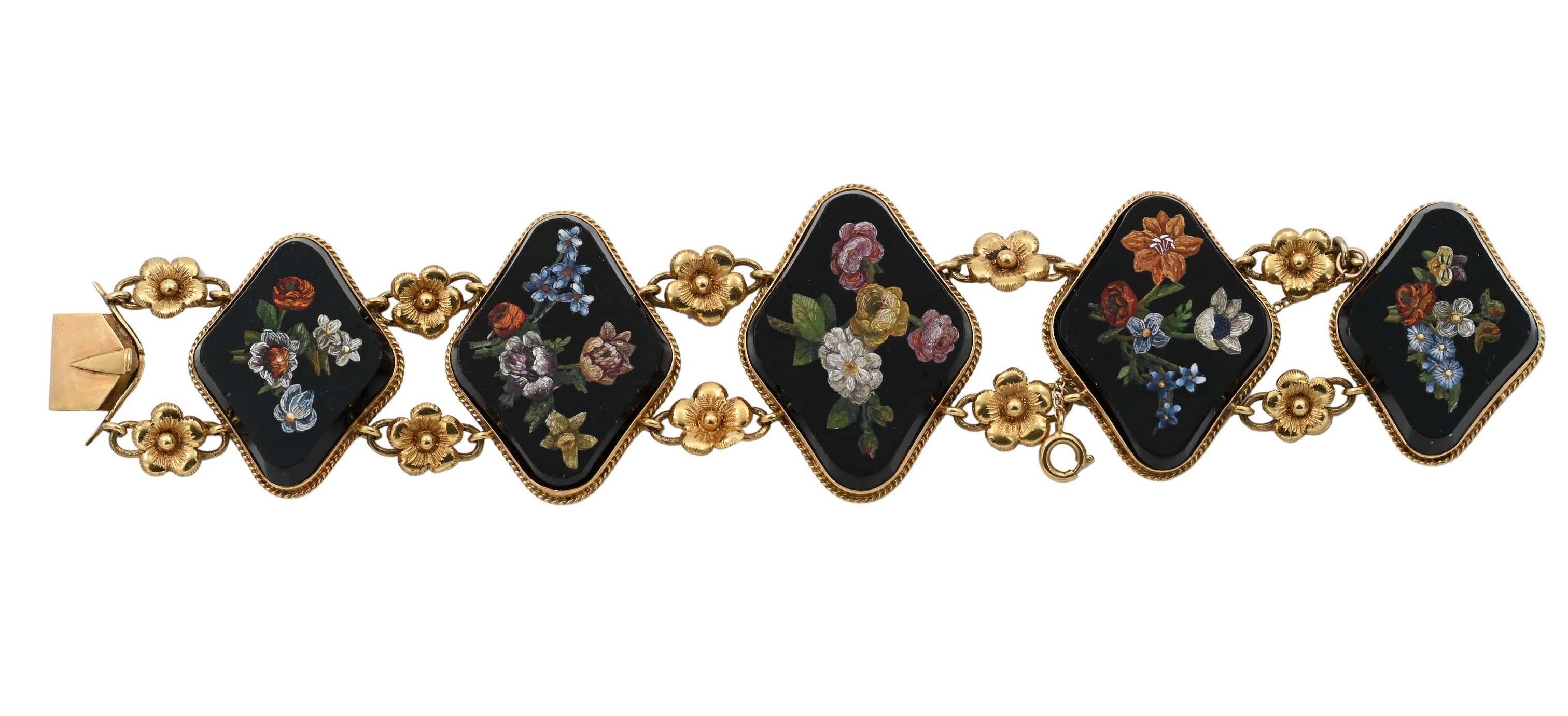 Three Piece 18K Yellow Gold Micro Mosaic Pendant / Brooch and Pair of Pierced Earrings