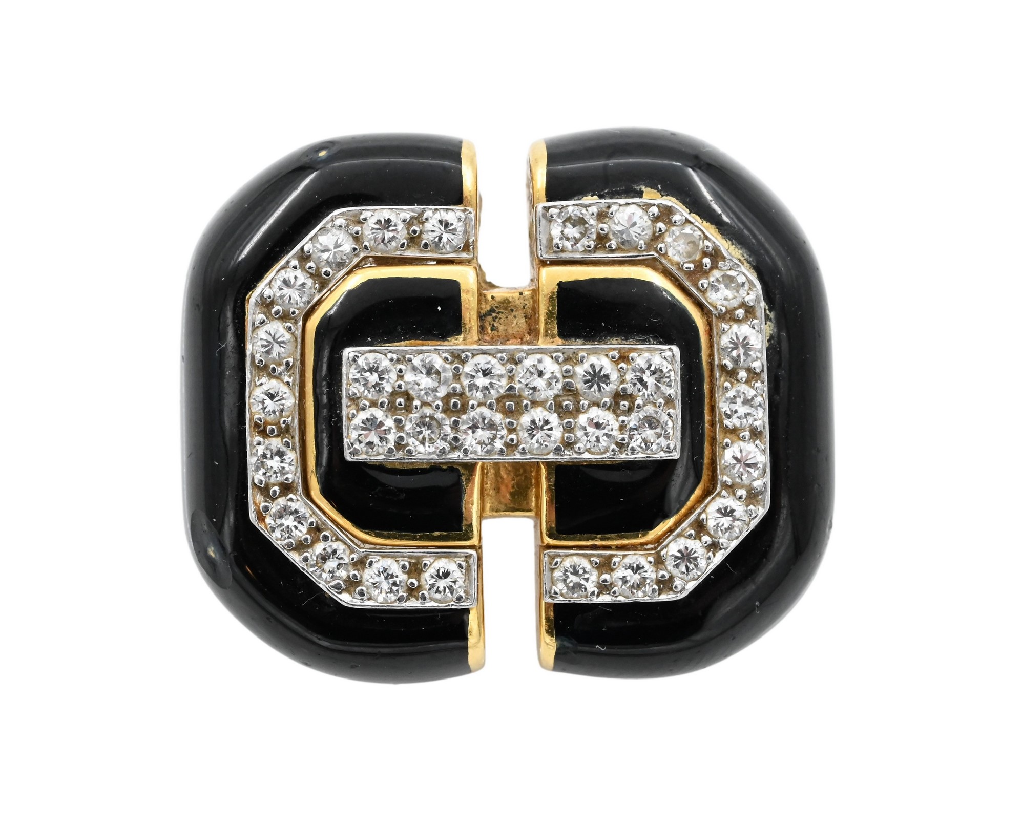 David Webb 18K Yellow Gold, Platinum Onyx Ring