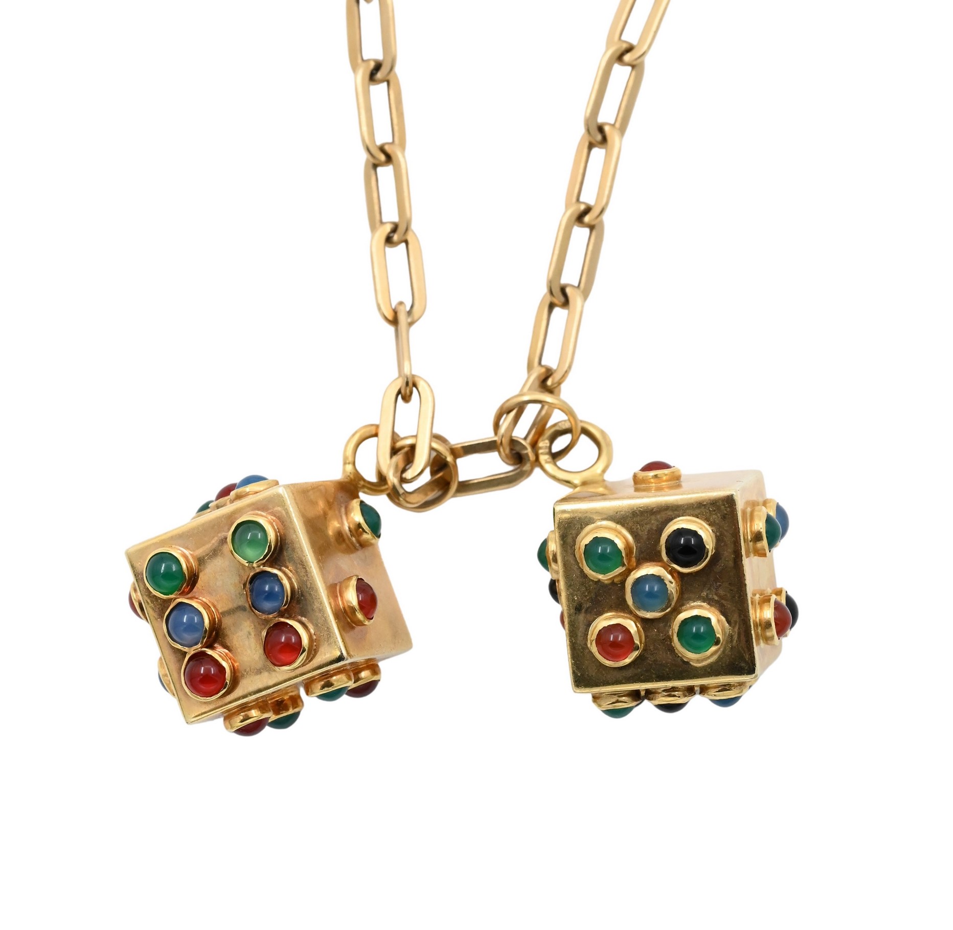 having a pair of dice or cubes set with small cabochon semi-precious stones