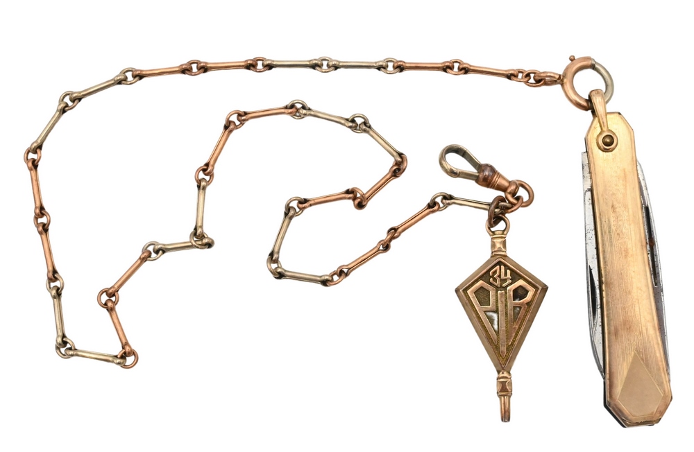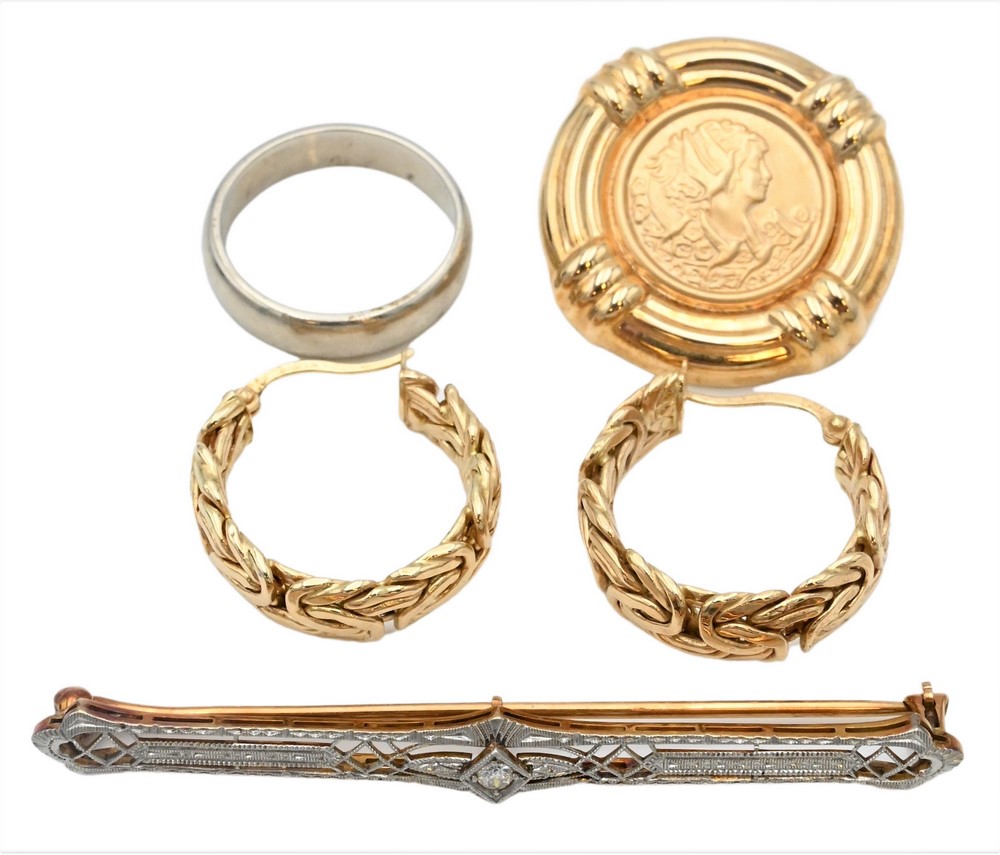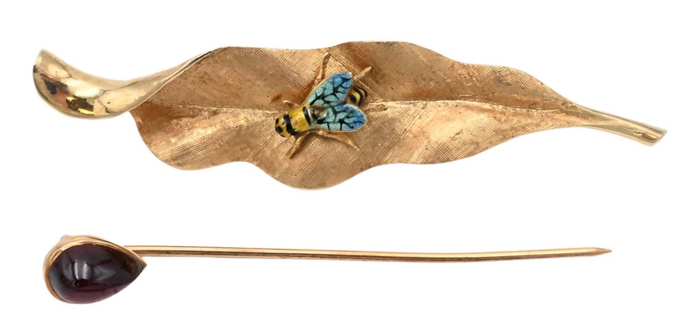 Four Piece Lot, to include a 14 karat gold and diamond horseshoe; 14 karat fox tie tack with diamond eyes (no backing); along with a pair of 10 karat gold cufflinks; 9.5 grams of 10 karat, 9.7 grams of 14 karat, total weight 19.2 grams.