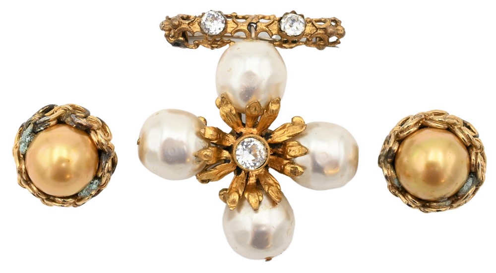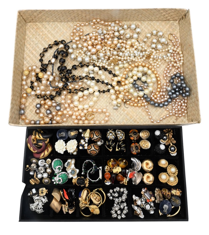 Group of Costume Jewelry, to include Ciner necklace with faux pearls and bracelet; Ciner green hardstone beaded necklace, yellow beaded necklace, two yellow tourmaline stone necklaces, along with Ciner metal.