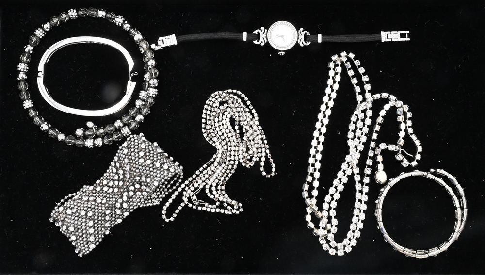 Group of Costume Jewelry, to include a Swarovski necklace and bracelet; Yik Fung bracelet; two unmarked necklaces and a bracelet; along with a Metropolitan Museum wristwatch.