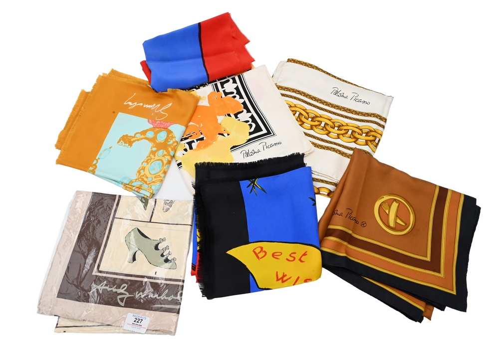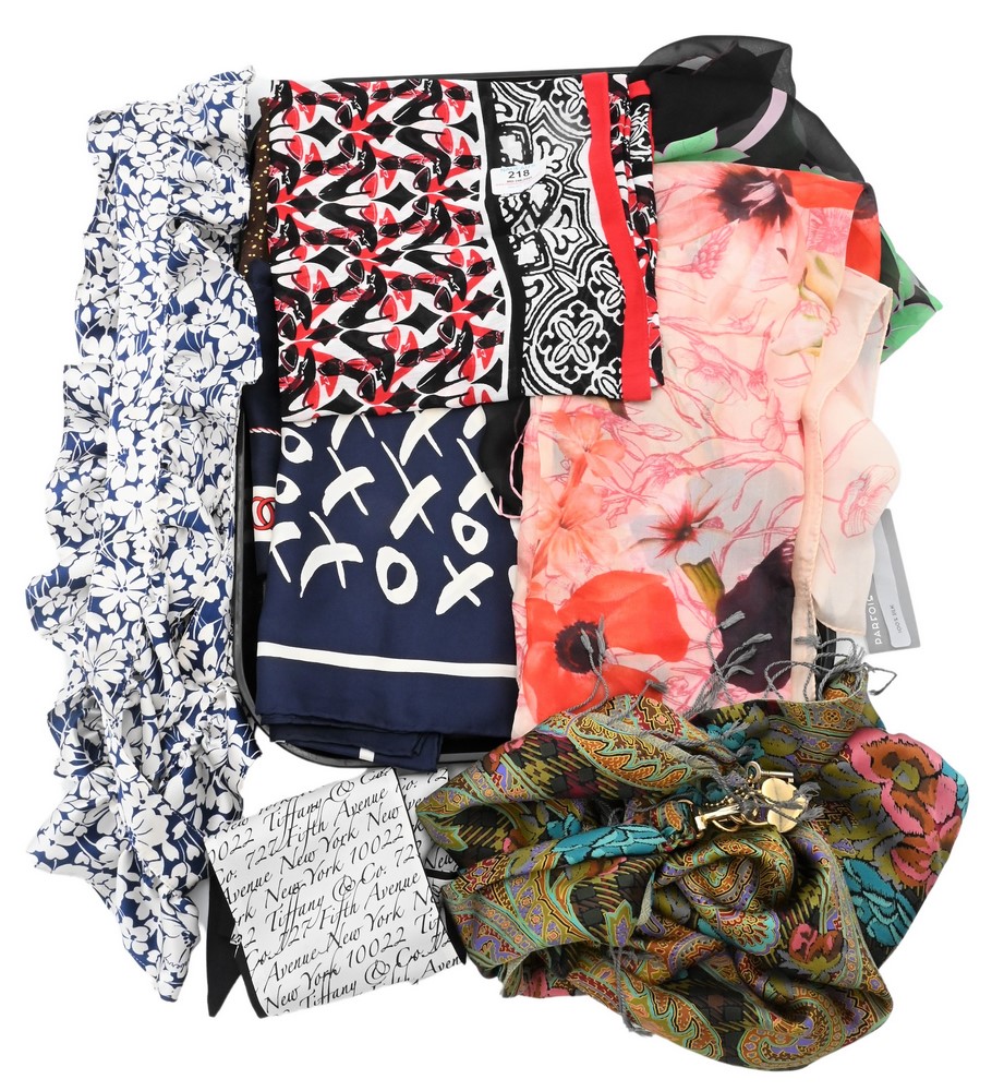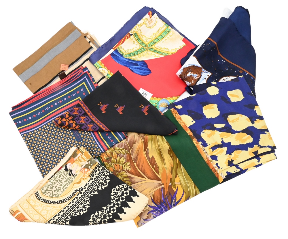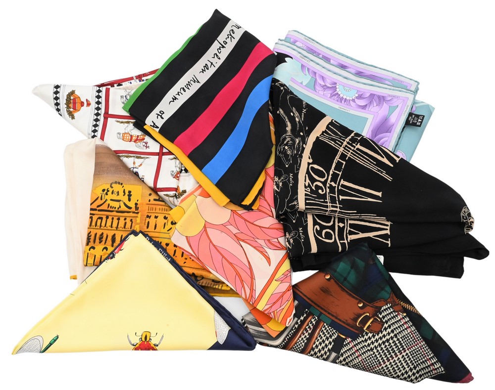Group of Eight Silk Scarves, to include Yves St. Laurent, Fuilio Pucci, Peter Elliott Ascot, Ralph Lauren, Tatiana Mckinney, Leonard, Timney Fowler, London, along with Wathre.