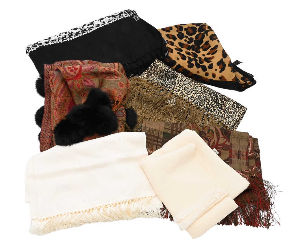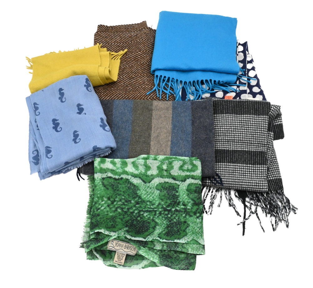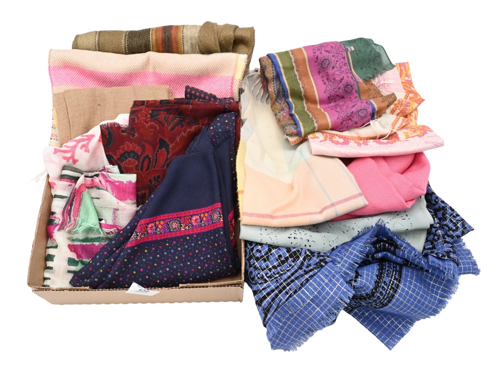 Group of 14 Cashmere Silk Scarves, to include Ananda, Petrusse silk, Kevin O’Brien Studio, Codello, Jeffrey Aronoff, Multiband, Tolani, Colombo, Inovi, Guy Laroche, etc.