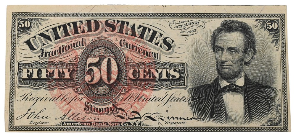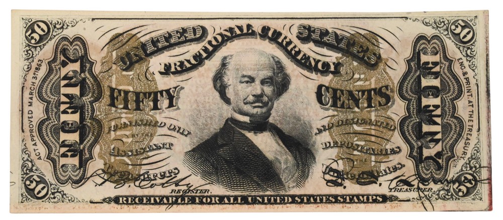 Three 50 Cent Fractional Currency, to include paper bank note, fourth issue Samuel Dexter Secretary Treasury 1801; along with two fifth issue William Crawford; all in very good condition.