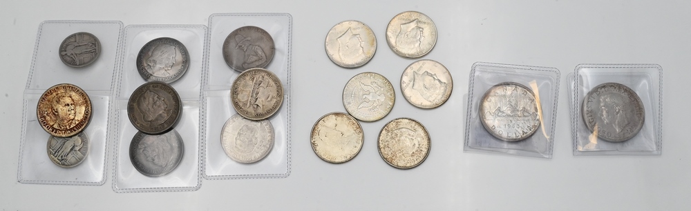 Lot of 17 Coins, to include two 1917 quarters; four Columbian Exhibition half dollars; two Booker T. Washington half dollar; pilgrim half dollar; four Kennedy 1964; two George Carver, along with 1948 Canadian dollar and 1947 Canadian dollar.