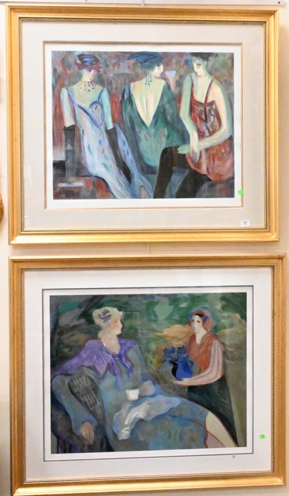 Two Barbara A Wood (American, 20th C.), lithographs, flappers edition 324/350, along with women having tea edition 266/350, each pencil signed lower right “Barbara A. Wood”, both sight size 26″ x 32″.