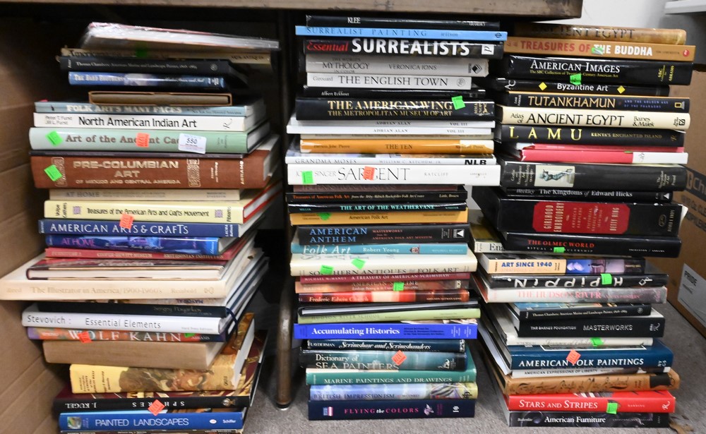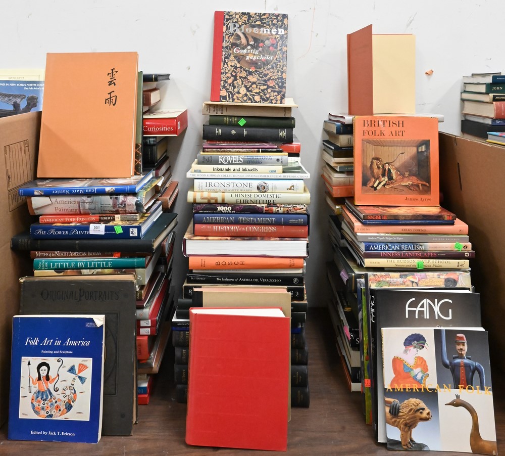 Large Group of Mostly Coffee Table Books, topics include American Native paintings, British folk art, Currier & Ives, etc.