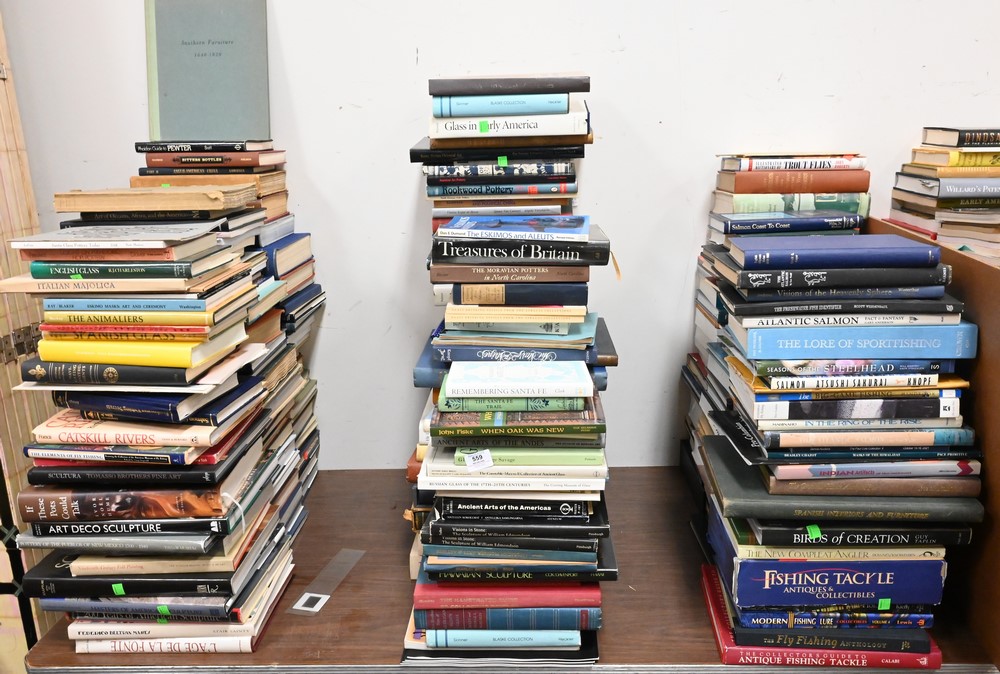 Large Group of Reference Books, topics include fishing, pottery, glass, sculpture, etc.