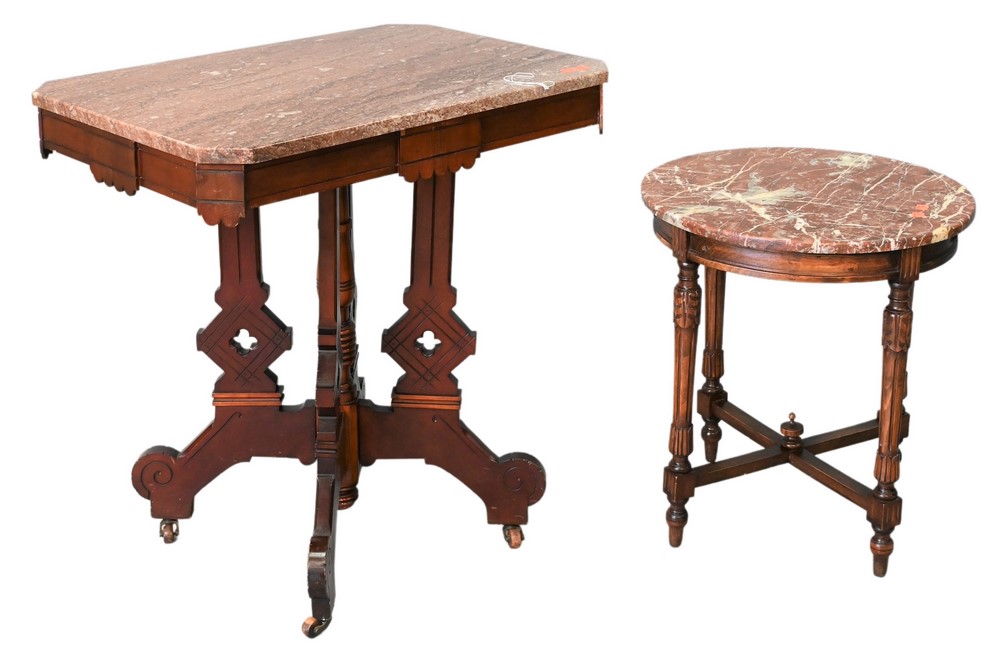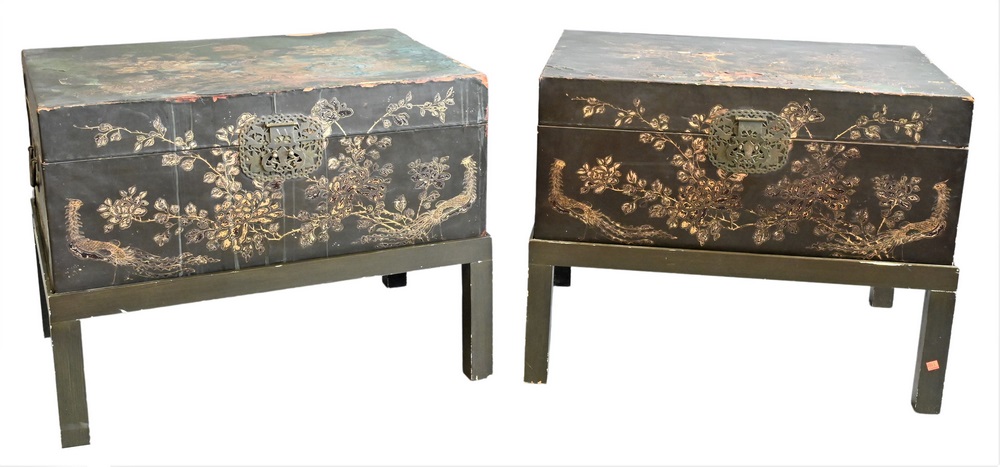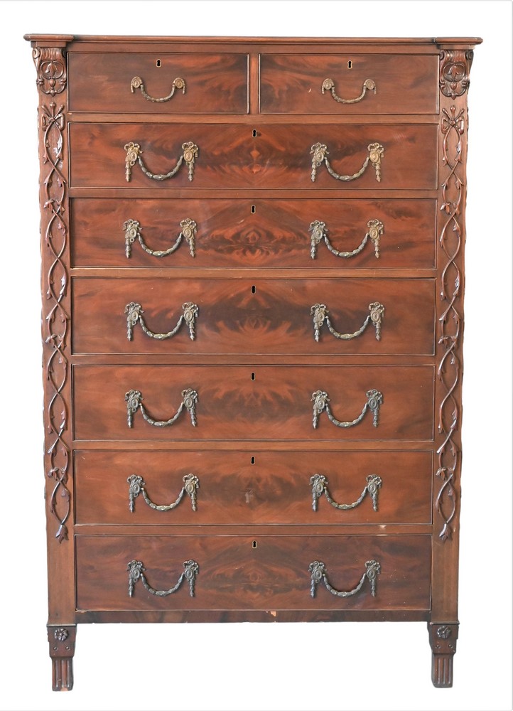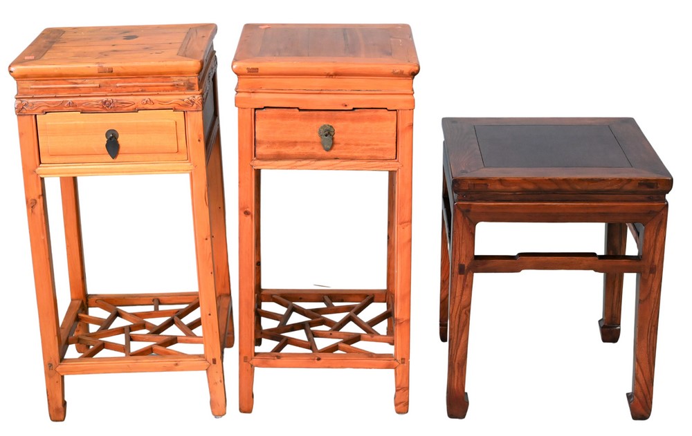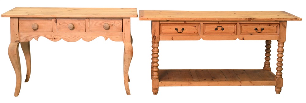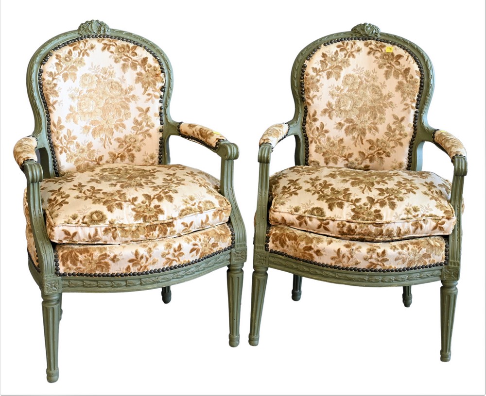 Karges Three Piece Set, to include a double chest, along with two Louis XV style bedside chests having two drawers each; height 33 1/2 inches, top 18″ x 76″.