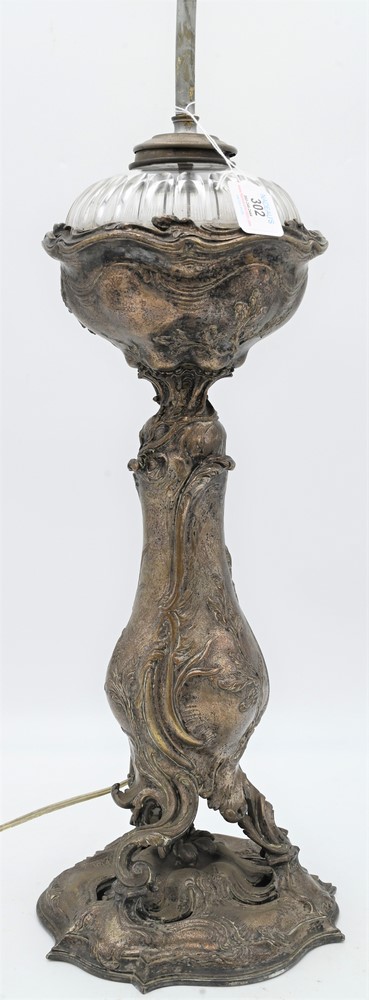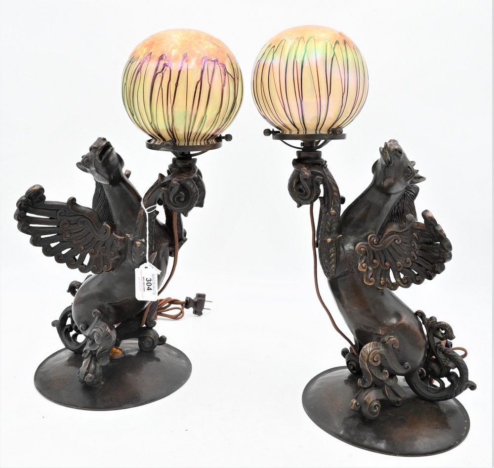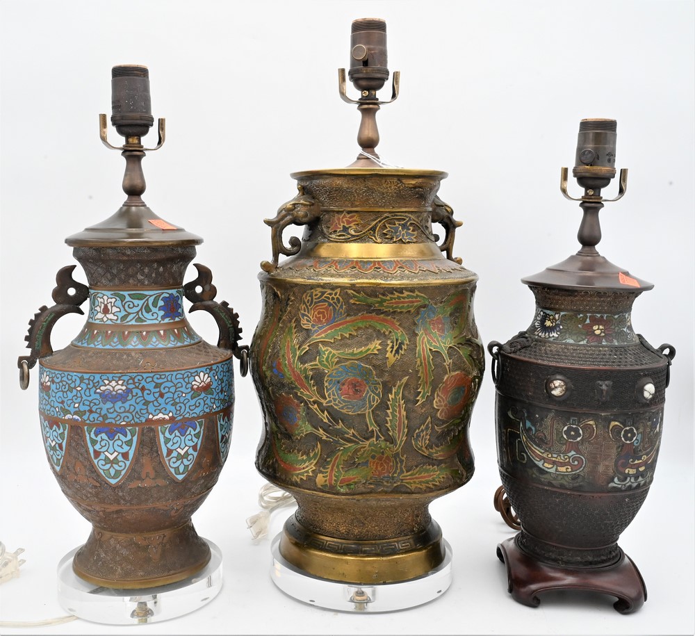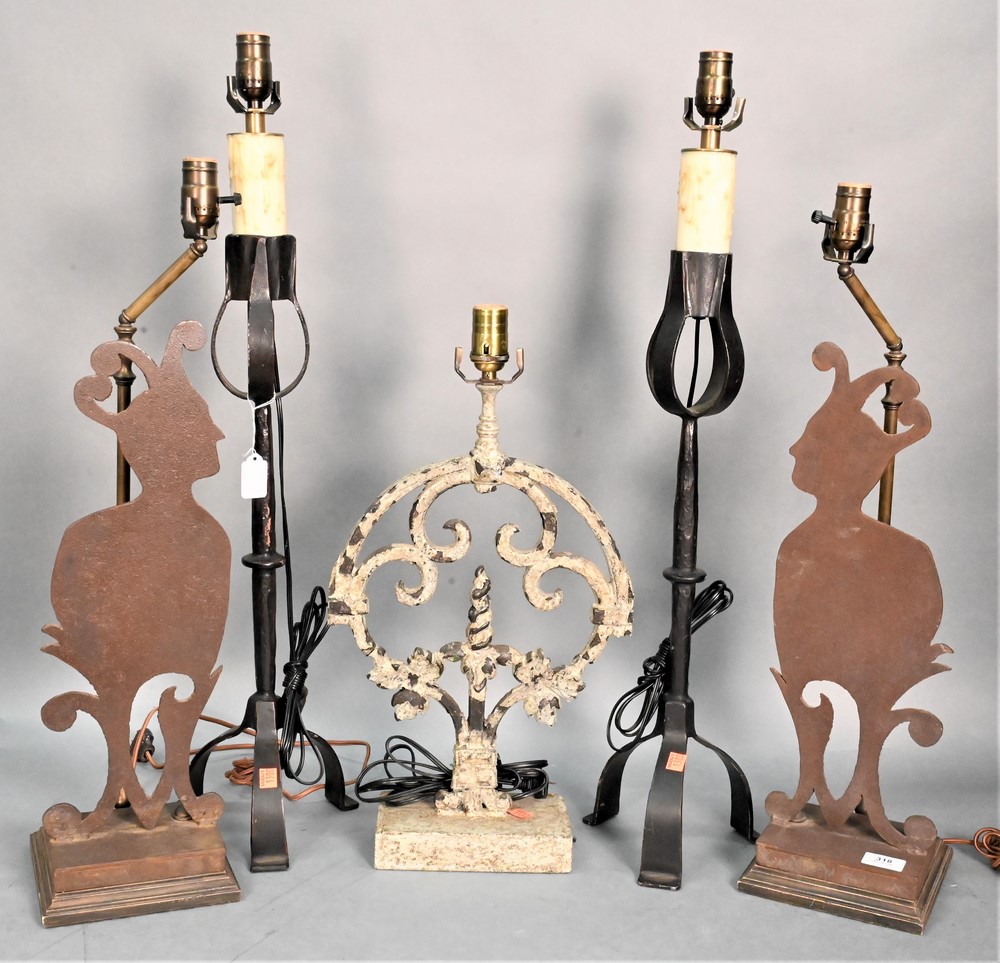 Nine Piece Group of Table Lamps, to include a pair of candlestick lamps, four fragments on lucite bases, along with three urns on lucite bases, tallest 23 inches.