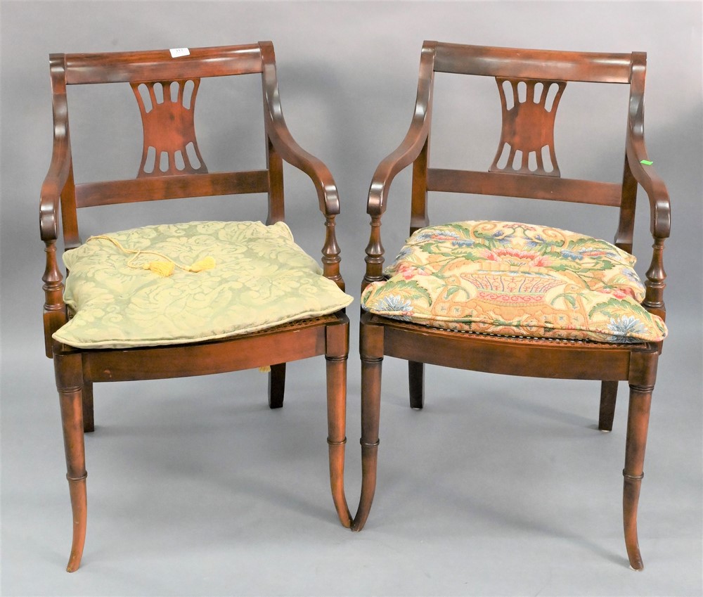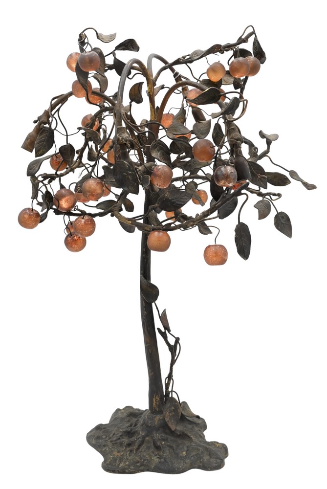 Three Pairs of Sconces, to include pair of carved wood fruit having two lights; pair of mirrored silvered three light sconces, along with a pair of painted two light, height 24 inches.