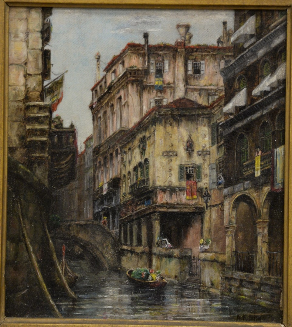 Three Piece Lot of Unframed Works on Canvas, to include a woman looking out her New York City window, unsigned a busy beach scene, signed indistinctly and dated 1874 lower right along with four women standing along the river in the rain, signed lower right each as is with loss, largest 20 x 40.