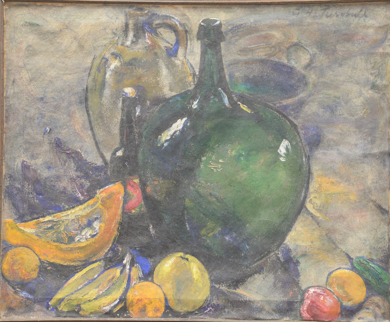 E.H. Turnbull early 20th century, The Green Bottle, oil on canvas, signed upper right E.H. Turnbull titled and dated on label adhered to the stretcher bar, 26 x 32.