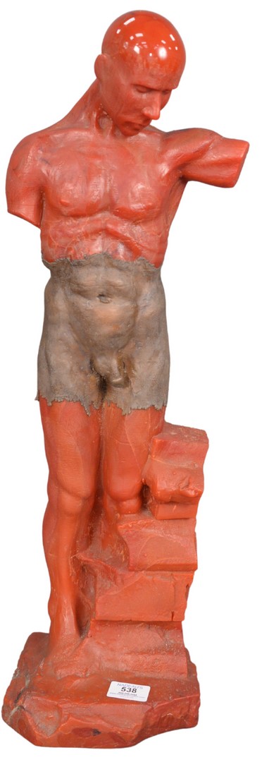 Paul Joseph Nelson American, b. 1945, red male nude, red sculpted glass and bronze, signed and dated to the base Paul J. Nelson, 99 height 27 inches, width 6 1/2 inches, depth 5 1/2 inches.