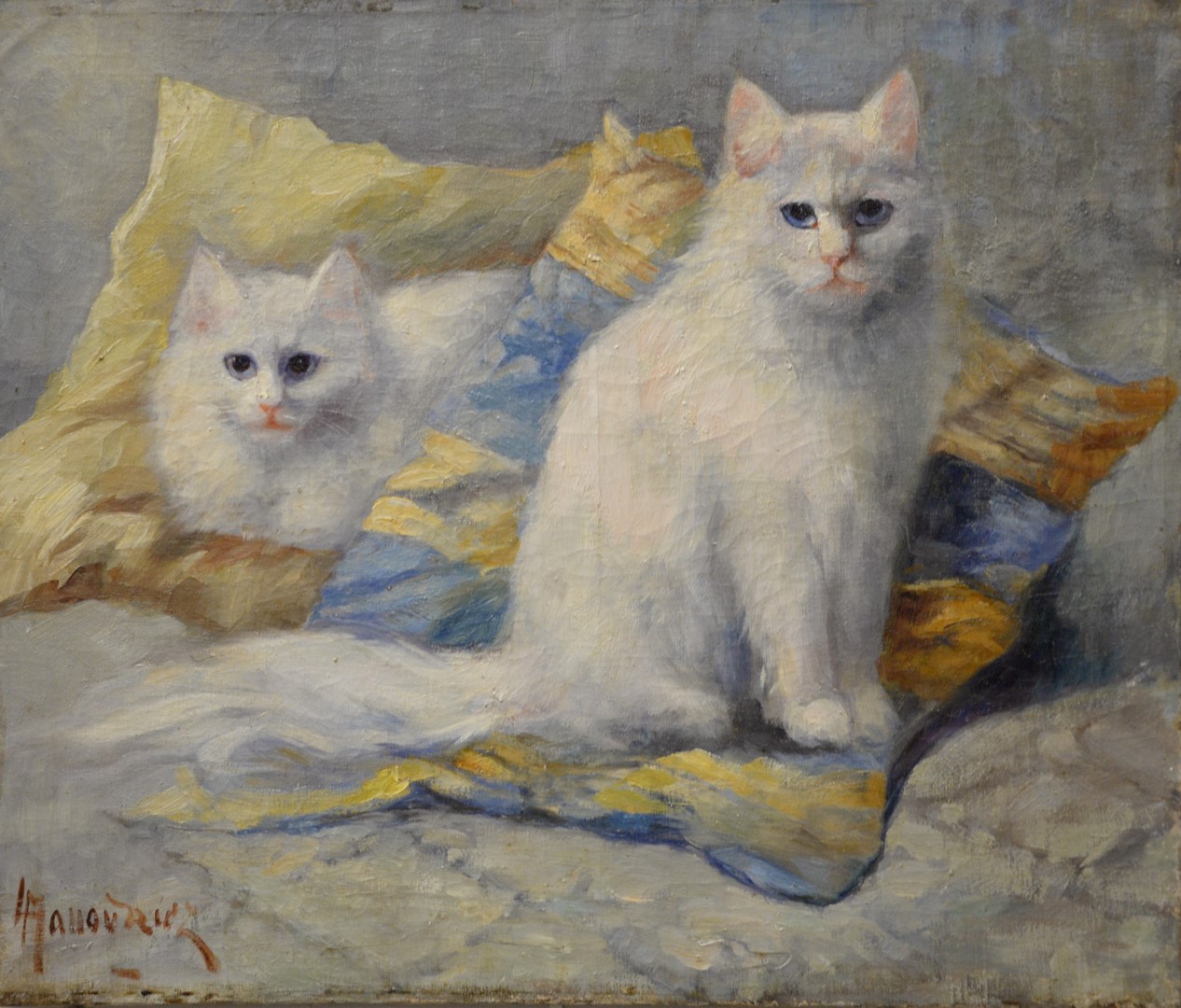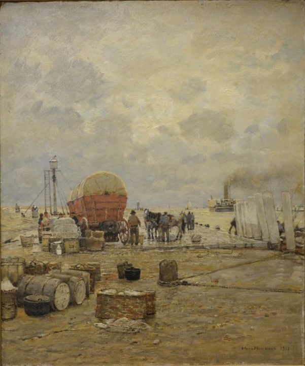 Dutch School 19th century, interior barn scene, oil on relined canvas, signed and dated with a seal lower right ‘Vente R. Vanderveen 1888’ 12 3/4 x 18.