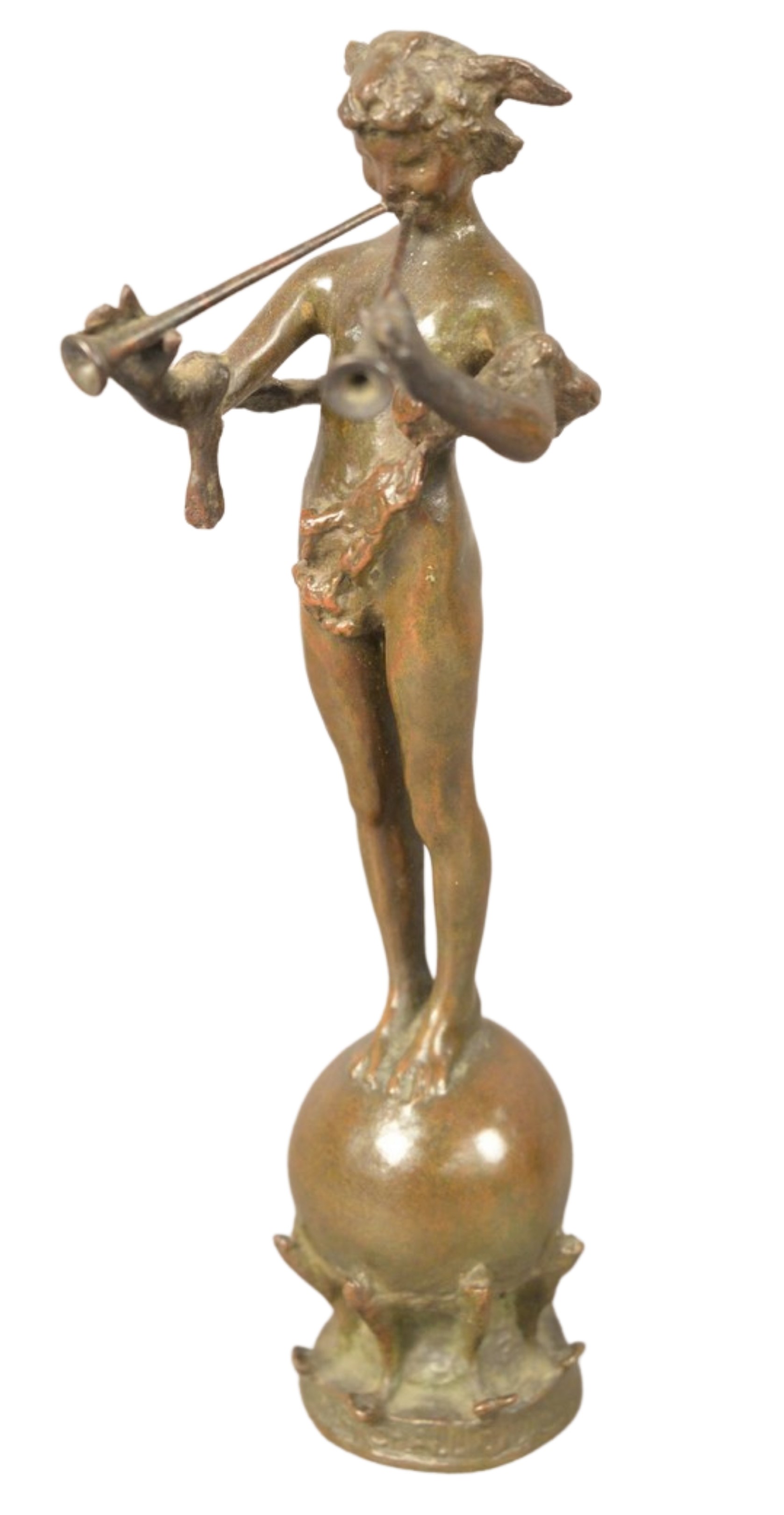 After Frederick William MacMonies French/American, 1863 – 1937, Pan of Rohallion, bronze with brown patina, inscribed on the reverse Frances F. MacMonies, 1890, height 10 1/2 inches.