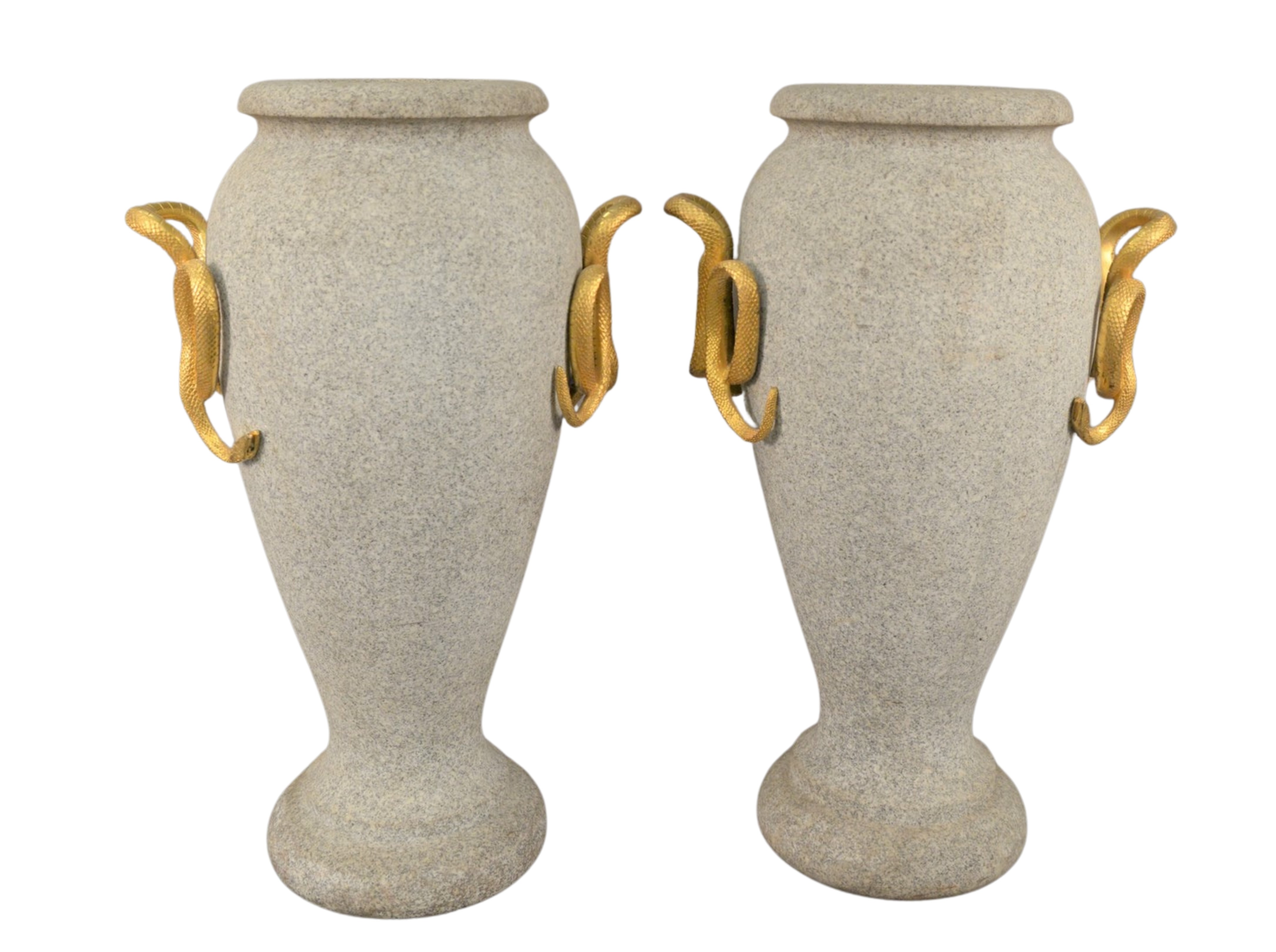 After Michel Claude Clodion French, 1738 – 1814, pair of terracotta satyrs, one having a bird, the other carrying a nest of baby birds, height 10 inches.