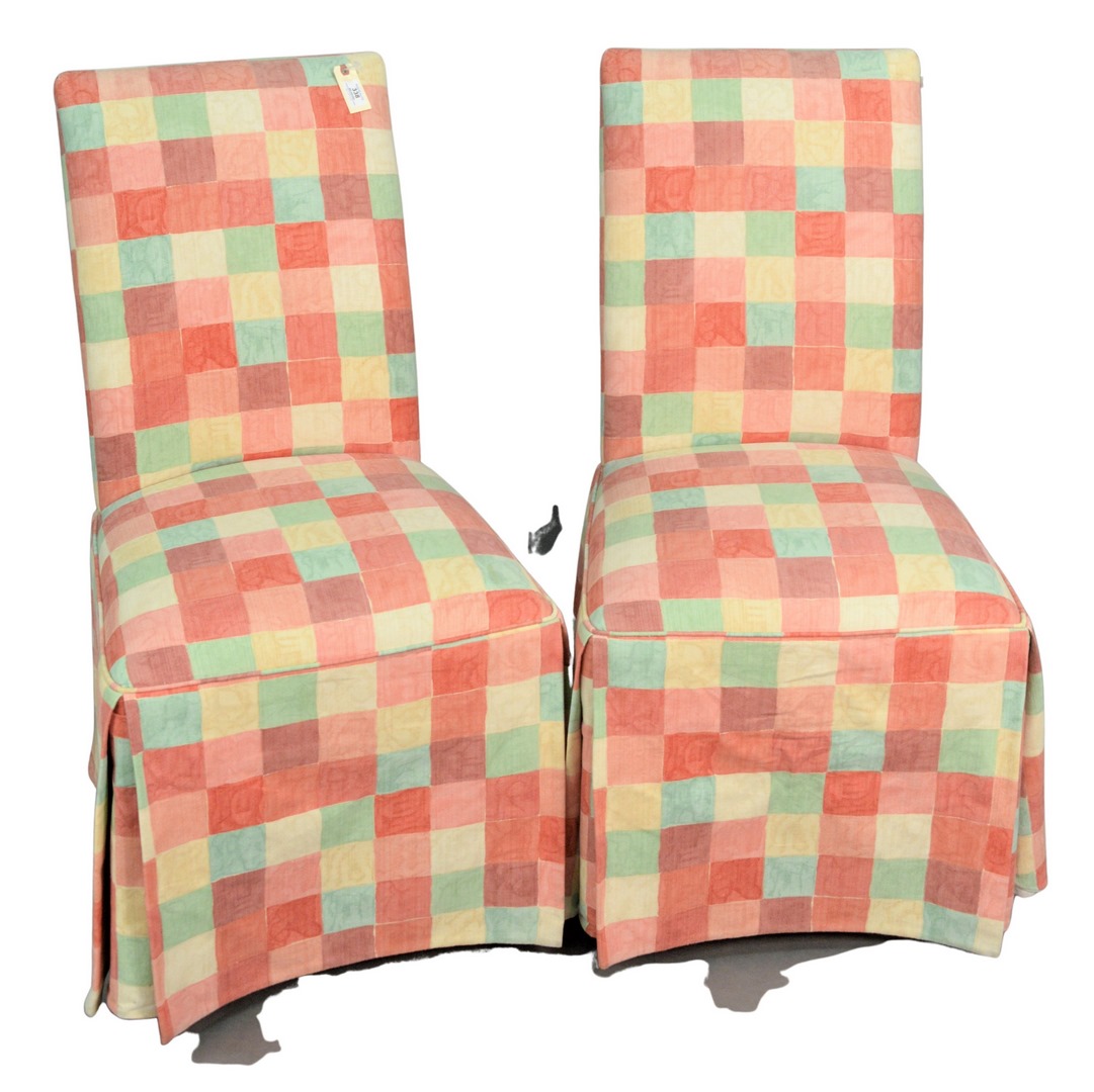 Seven piece lot to include a set of Four Fully Upholstered Dining Chairs, height 40 inches, width 20 1/2 inches, in excellent condition, along with three glass top tables.