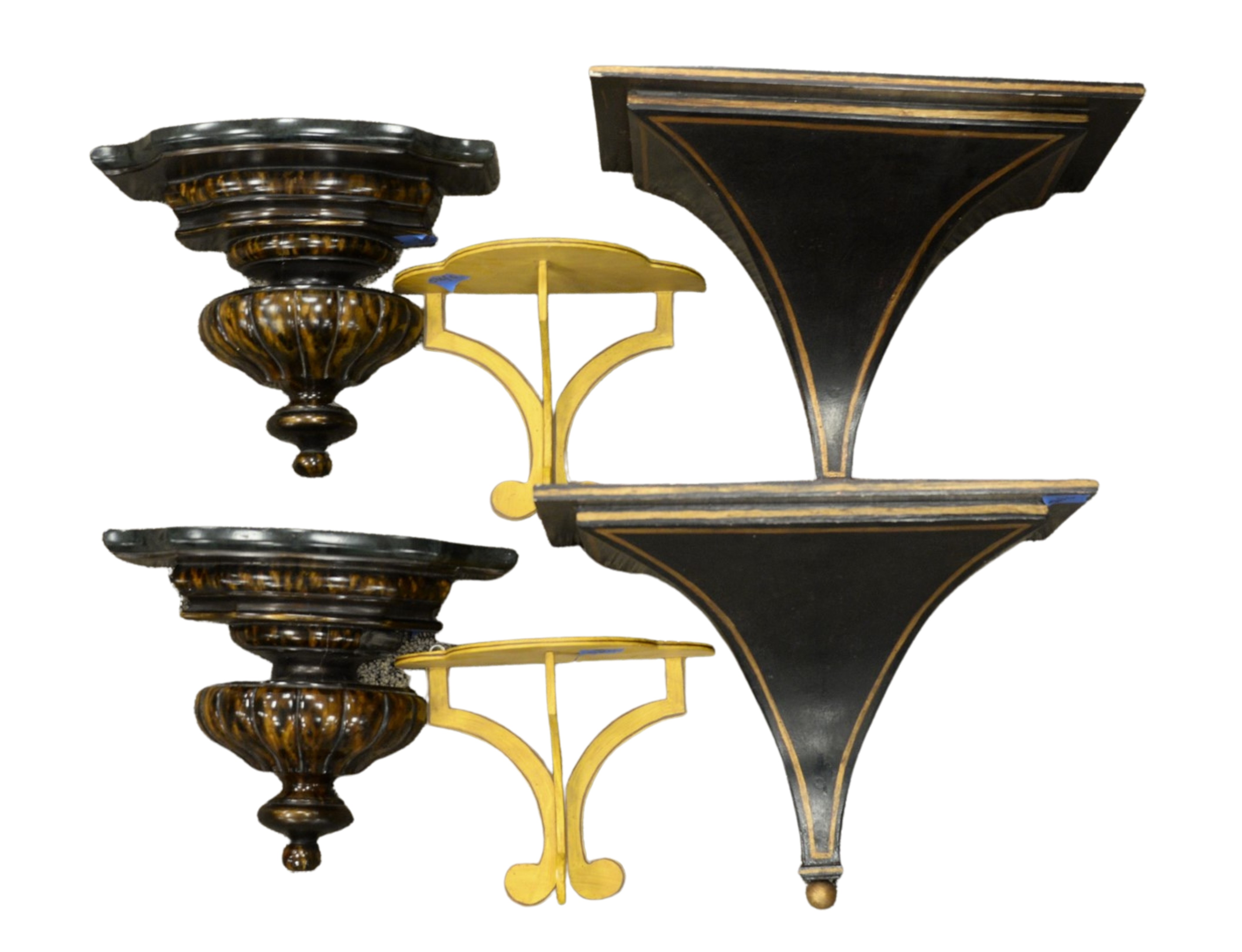 Nine Piece Group of Grand Tour Items to include a pair of framed carved puttis a pair of framed metal hammered crown forms a pair of framed cameo silhouettes along with three putti sculptures, largest putti height 10 1/2 inches.