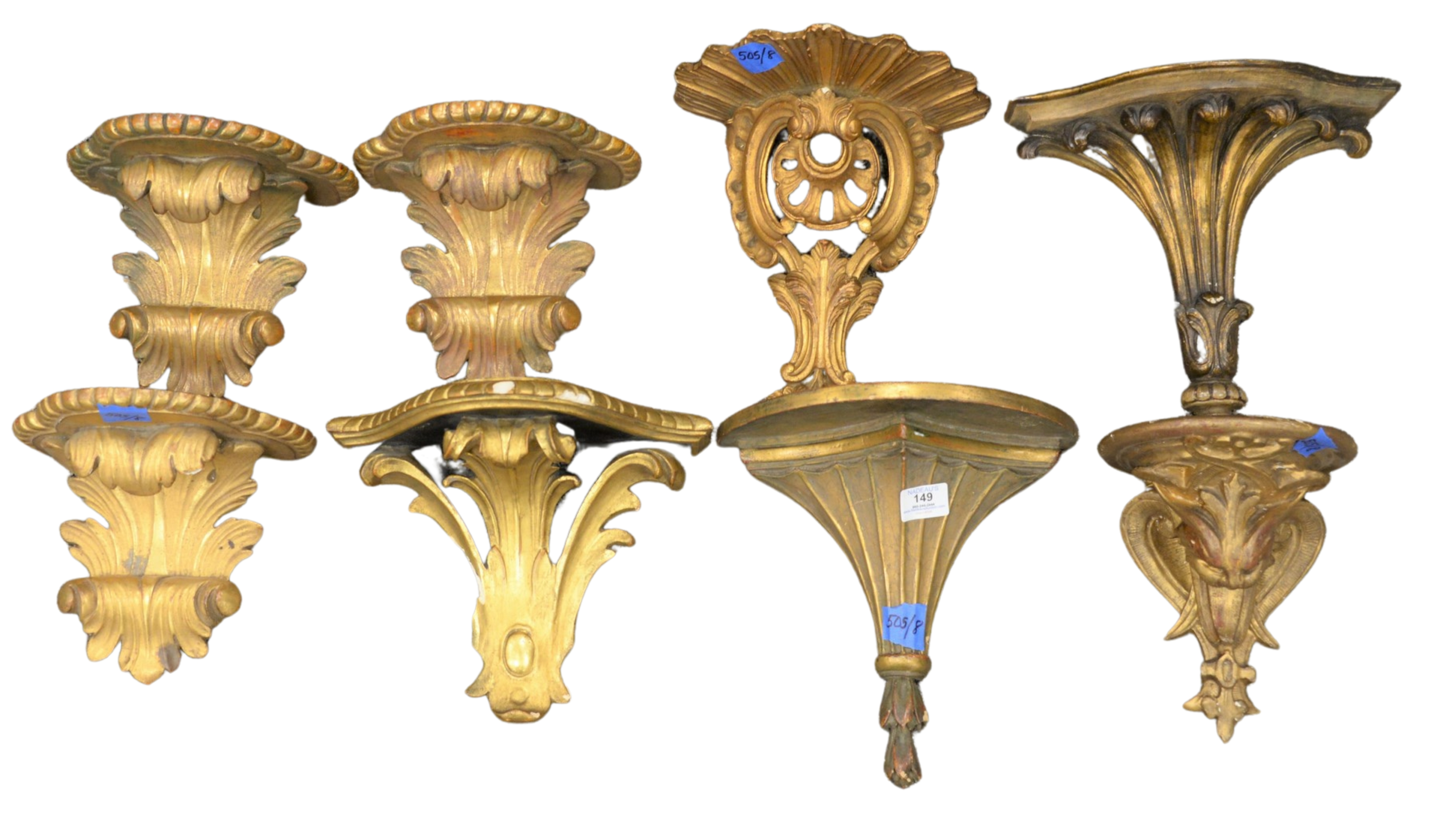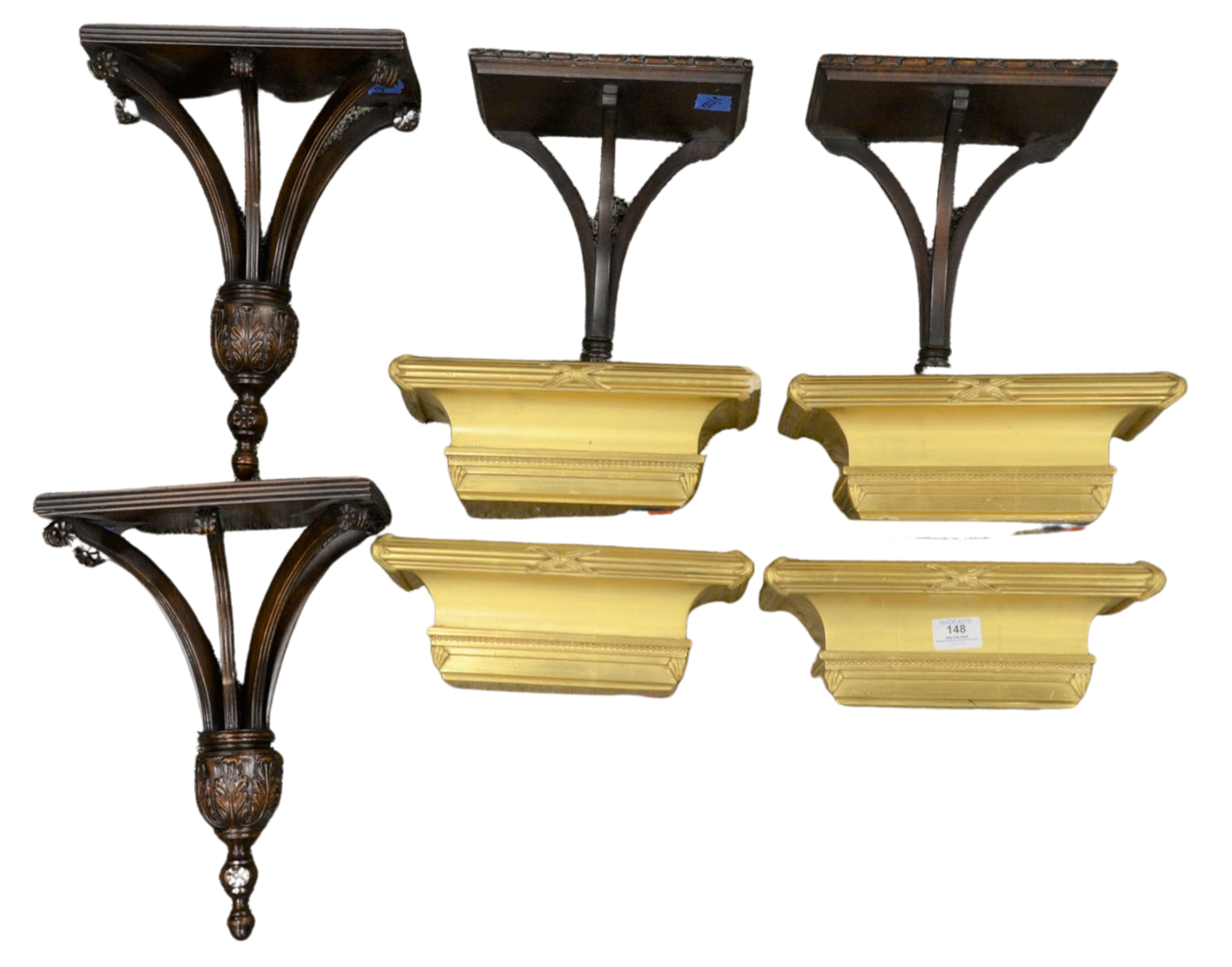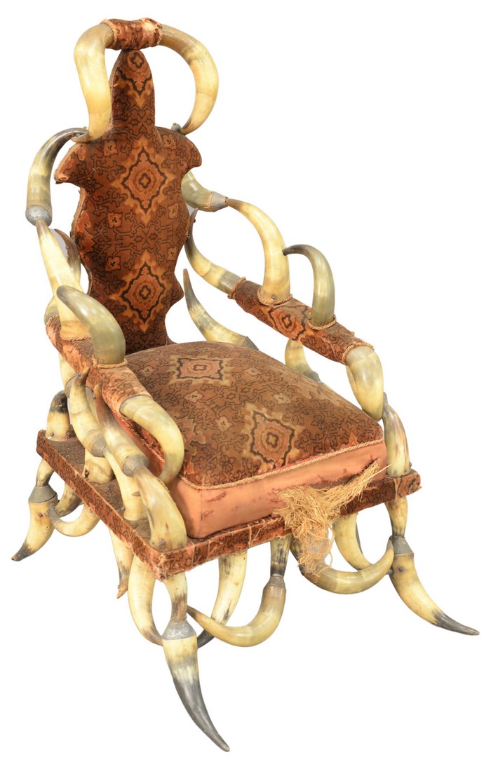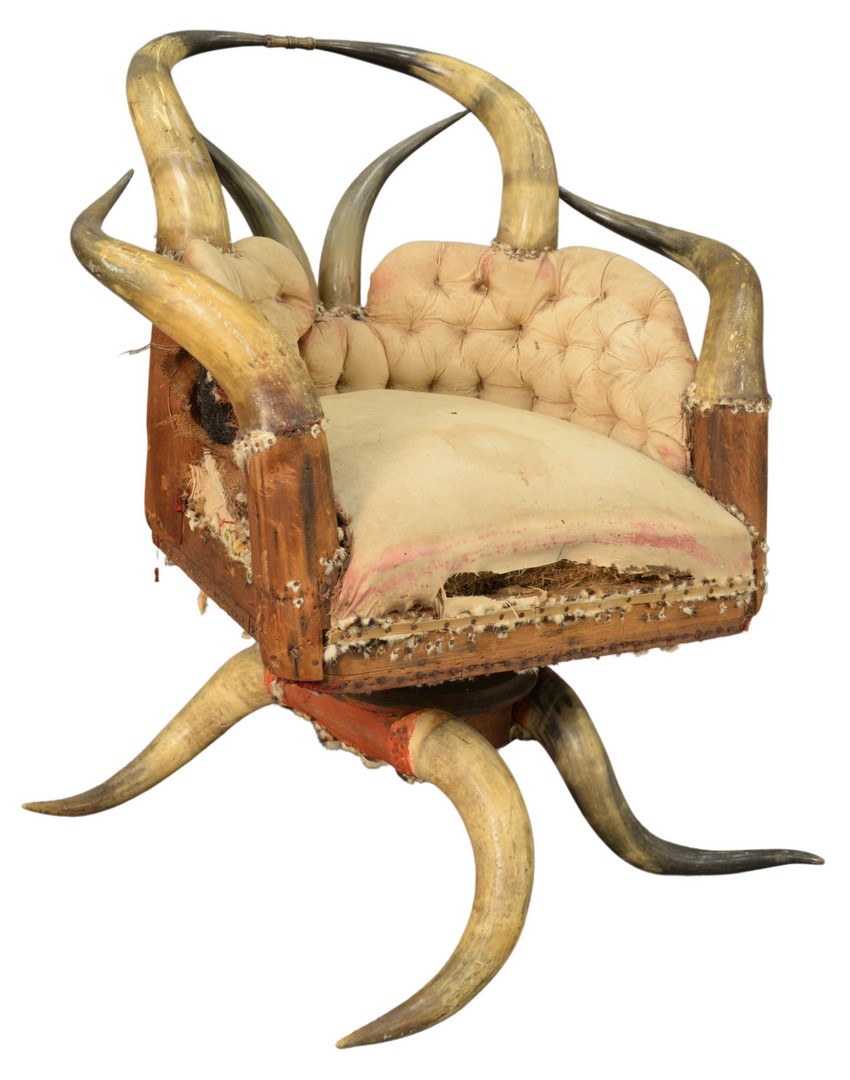 Four Piece Group, to include large wood carved goat with repairs and loss to the front left hoof, unsigned, height 29 1/2 inches along with three carved and painted masks, height 11 1/2 inches, depth 7 inches.