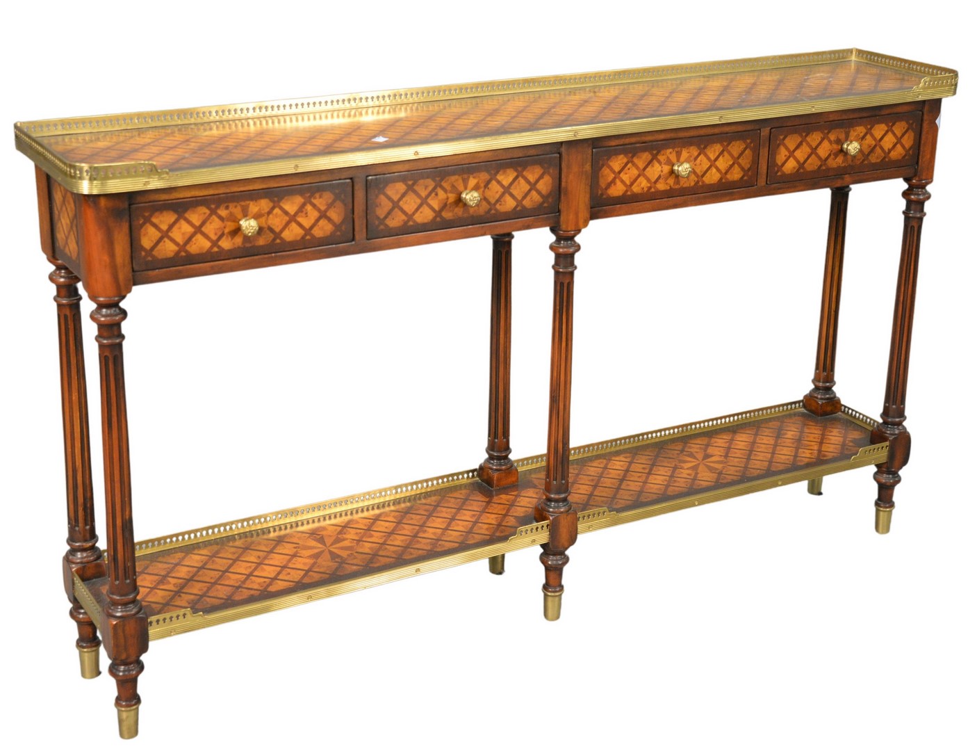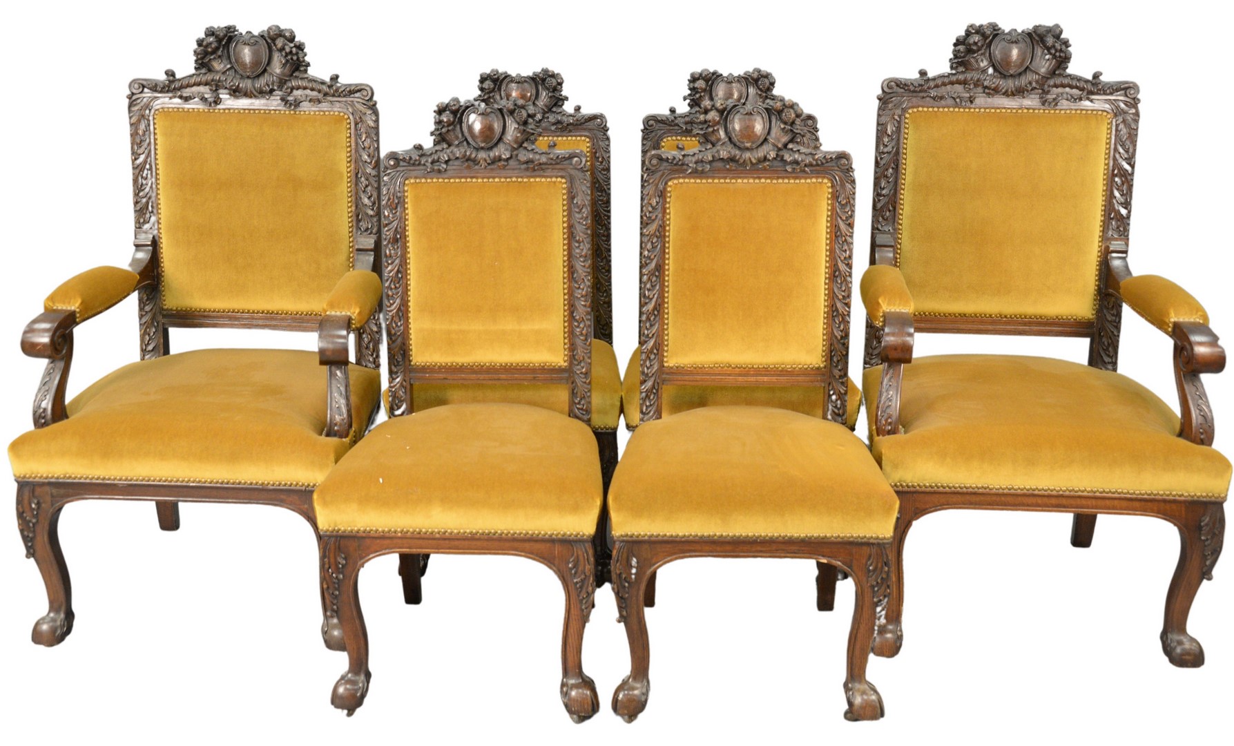 R.J. Horner Mahogany Winged Griffin Carved Desk, having lion face drawers and faux drawer on reverse, all set on large claw feet, height 30 inches, top 33 x 55.