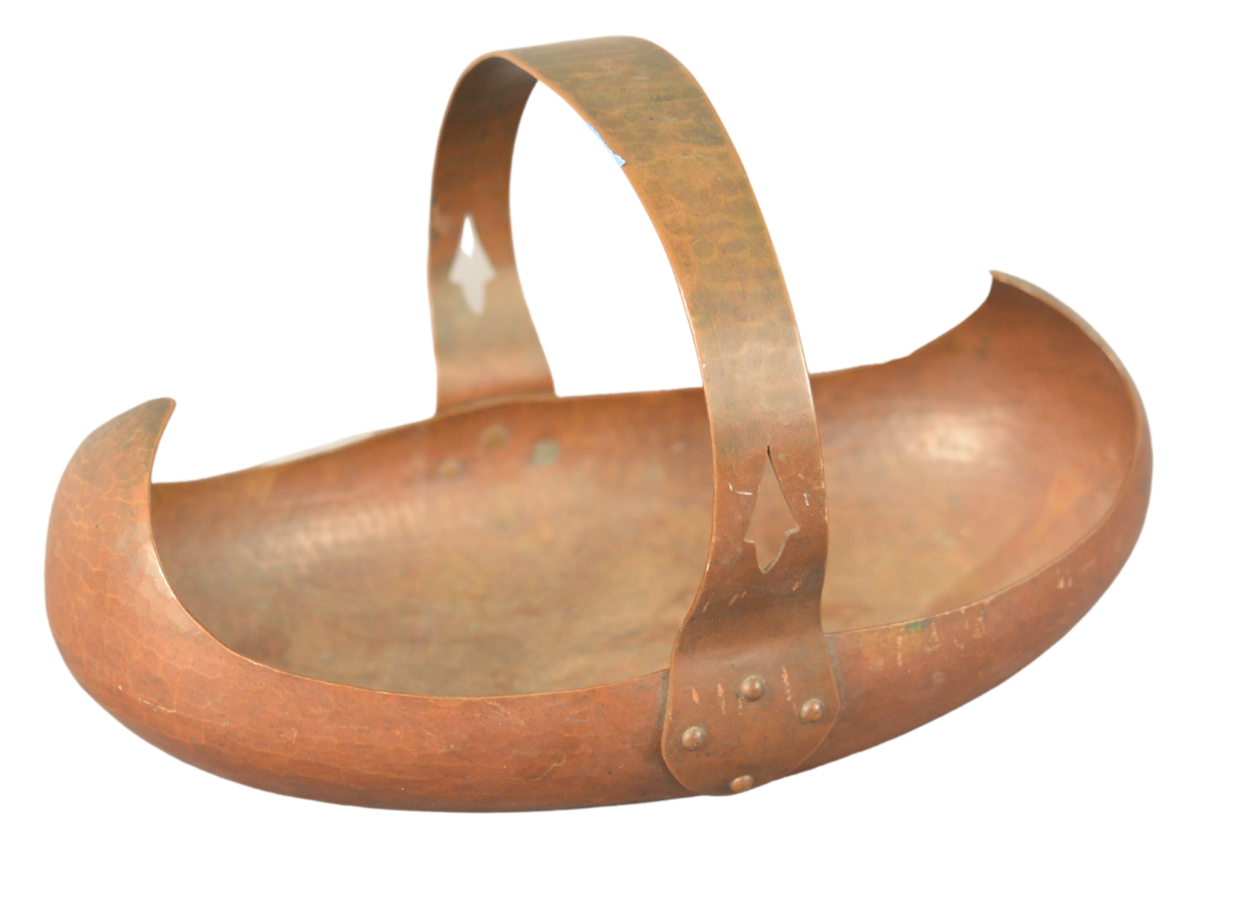 Dirk Van Erp Hand Hammered Copper Flower Basket, marked to the underside ‘Dirvan Erp’ having the form of a lighthouse, height 6 1/2 inches, width 7 inches, depth 6 1/2 inches.